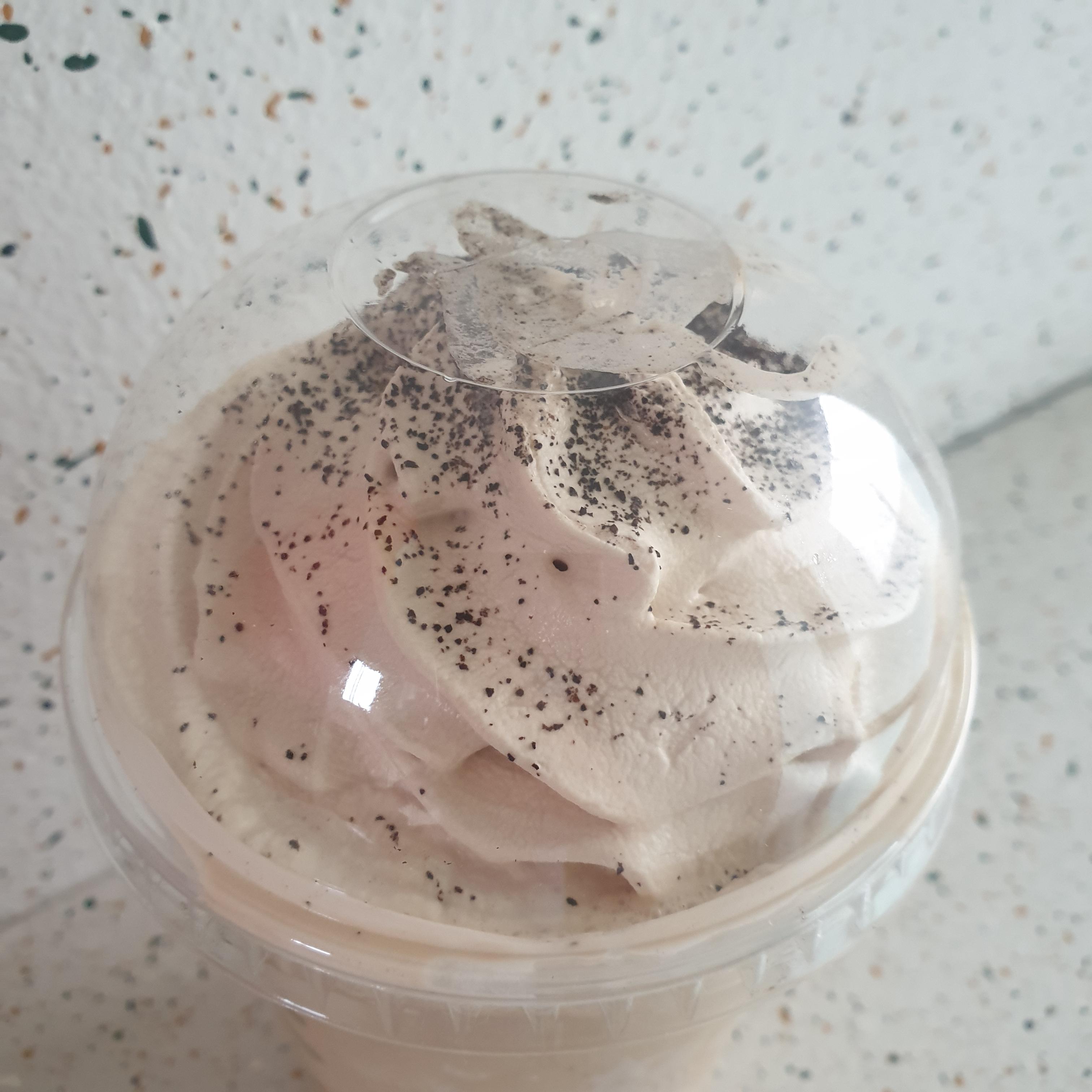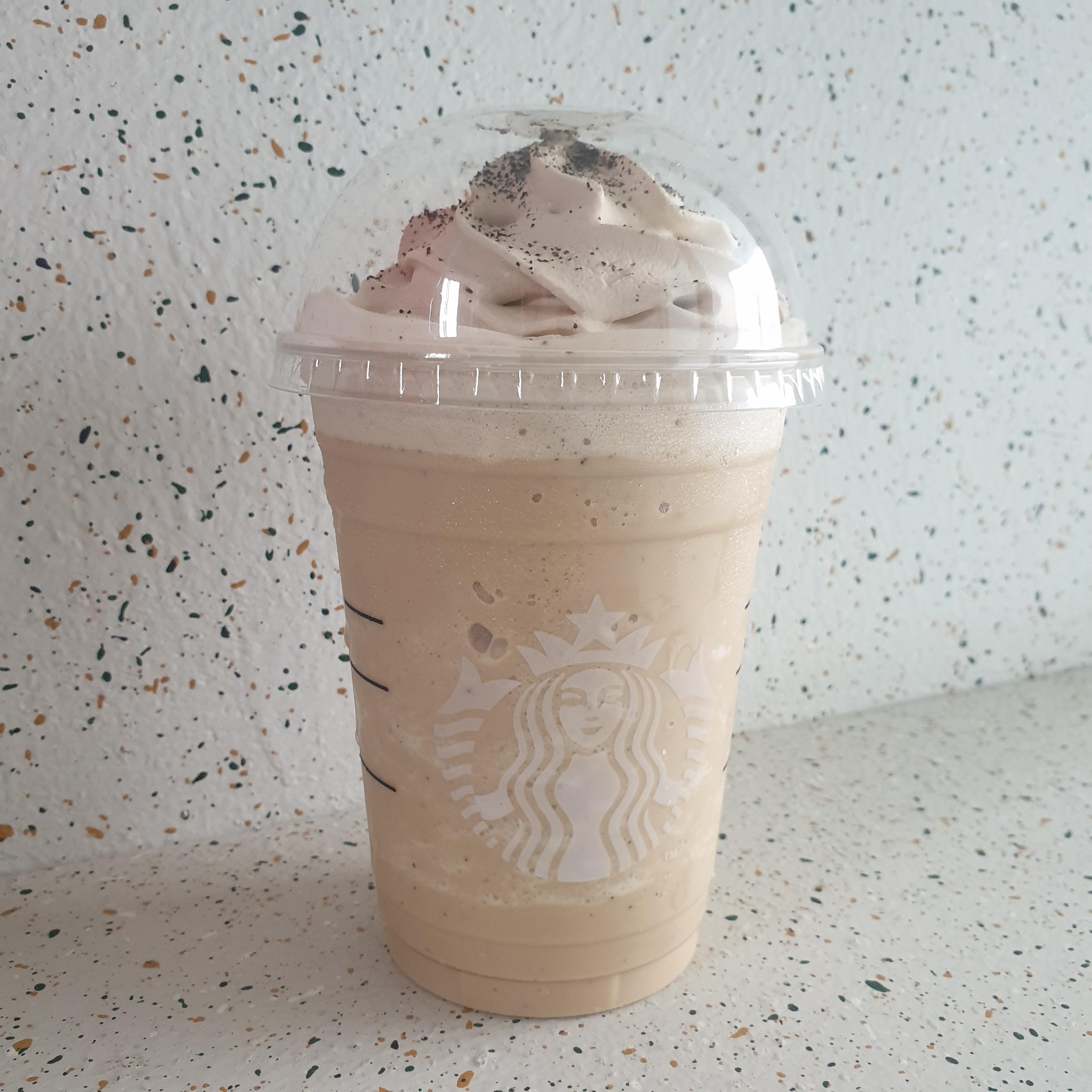 에스프레소 휘핑이 뿌려져 있다. 스타벅스 휘핑은 싼맛나서 별로 안 좋아하는데 에스프레소는 괜찮았다. 위에는 파우더가 뿌려져 있다.