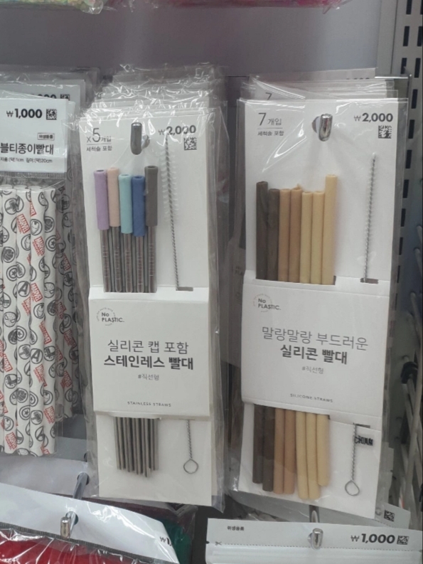 실리콘 빨대는 7개와 세척솔을 2천원에 팔고 있었는 마감 자체가 깔끔하지 않아서 사지 않았다.