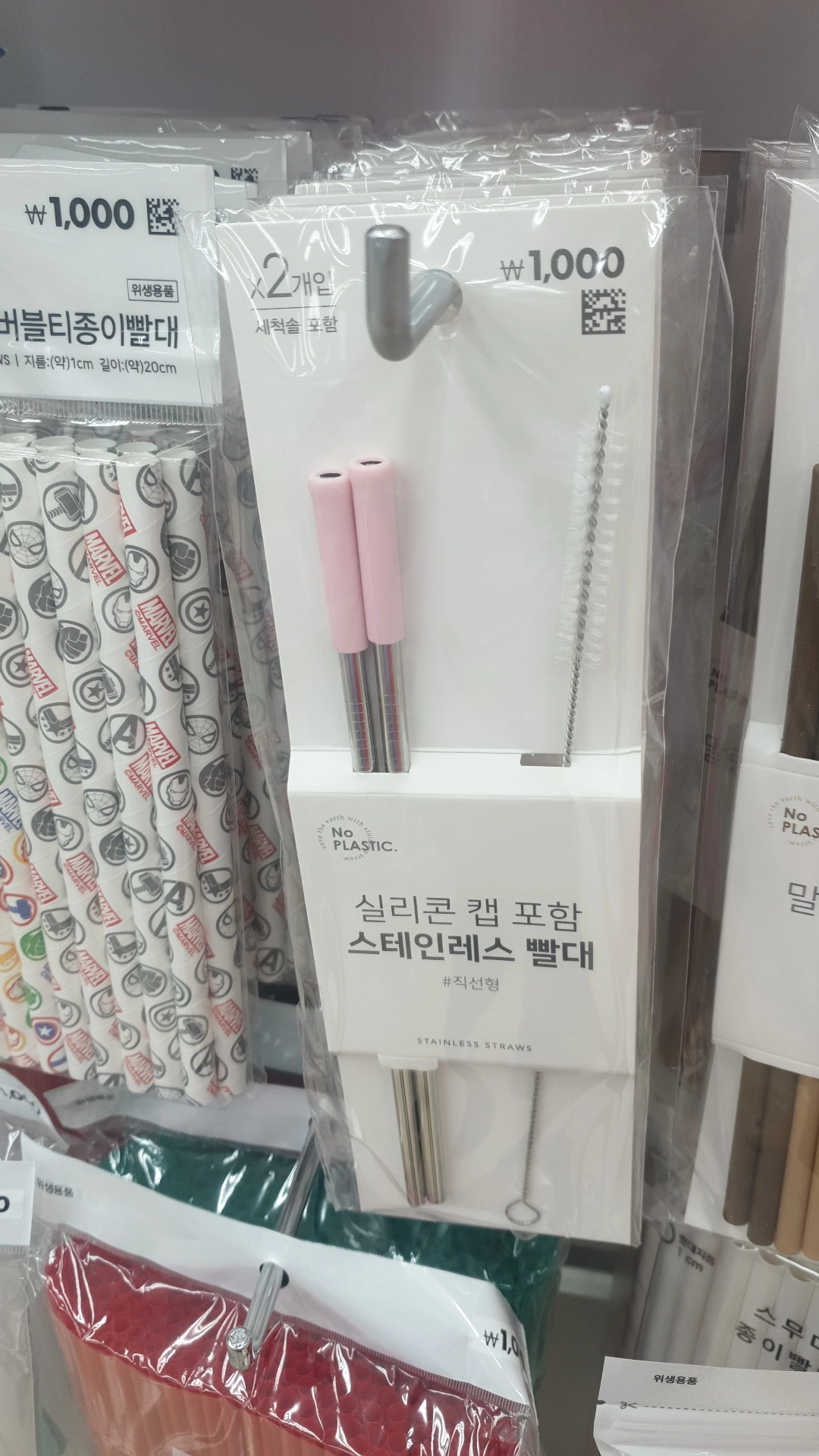 실리콘 캡이 있는 스텐 빨대를 2개와 솔과 함께 천원에 팔고 있었다. 치과 진료기기가 생각나서 별로 사고 싶지는 않았다.