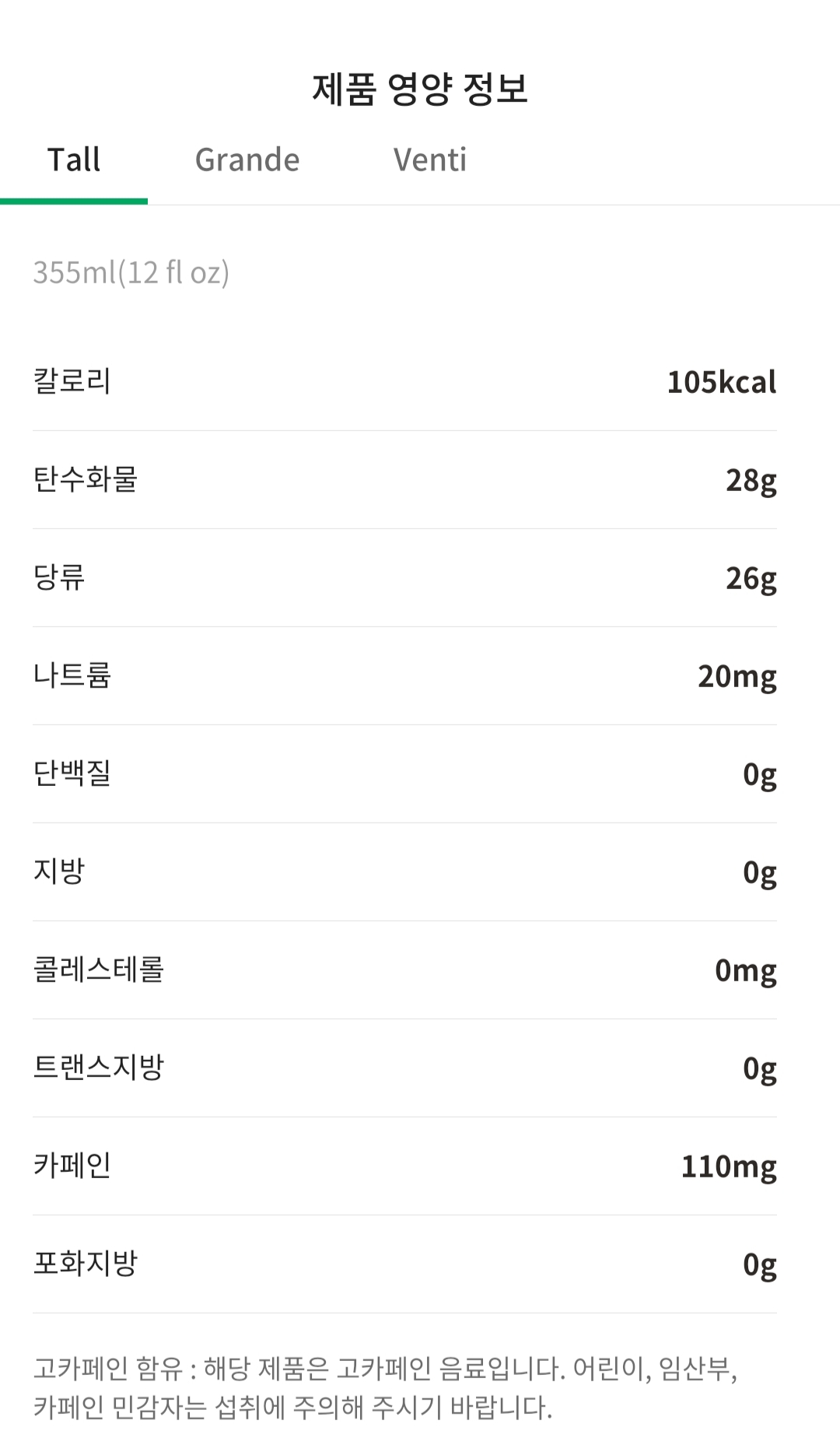 쿨라임 피지오 칼로리는 105kcal이고 카페인은 110mg로 고카페인 음료이다.