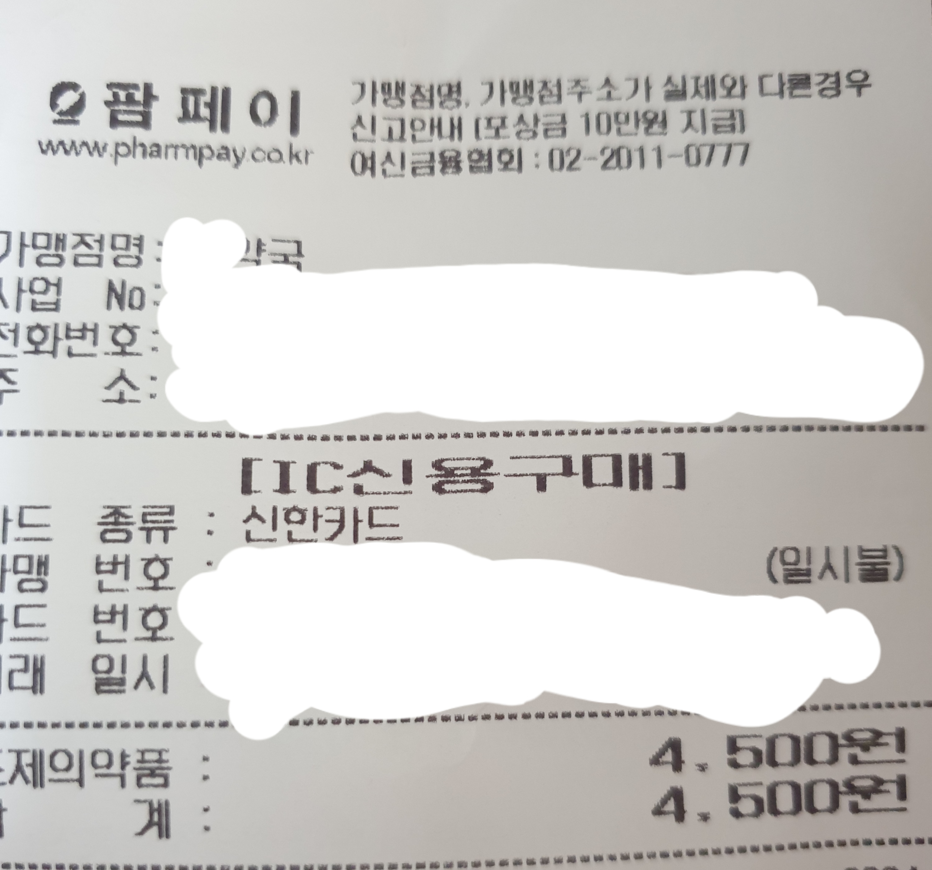 약국 쌍화탕 가격은 10개에 4,500원이다.