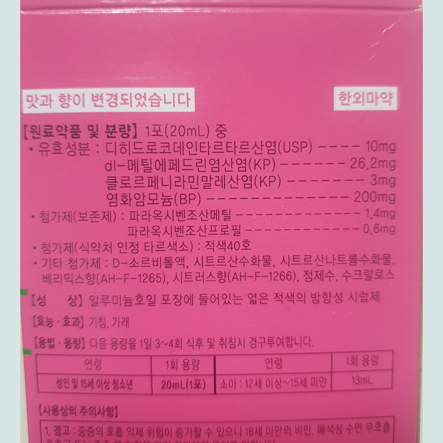 코푸시럽 용법은 성인 20ml(1포) 투여하고