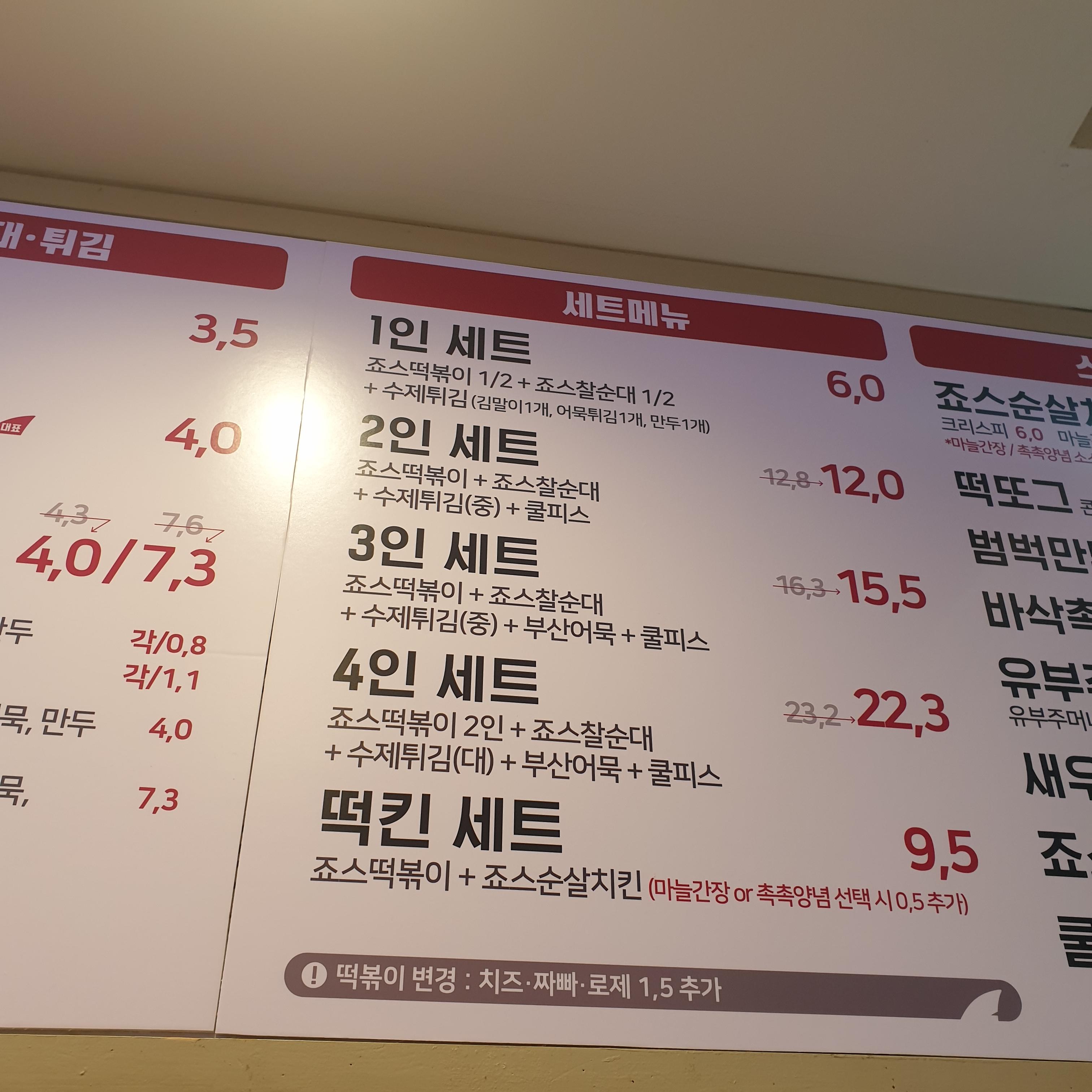 죠스 떡볶이 메뉴와 가격(2022년 4월)