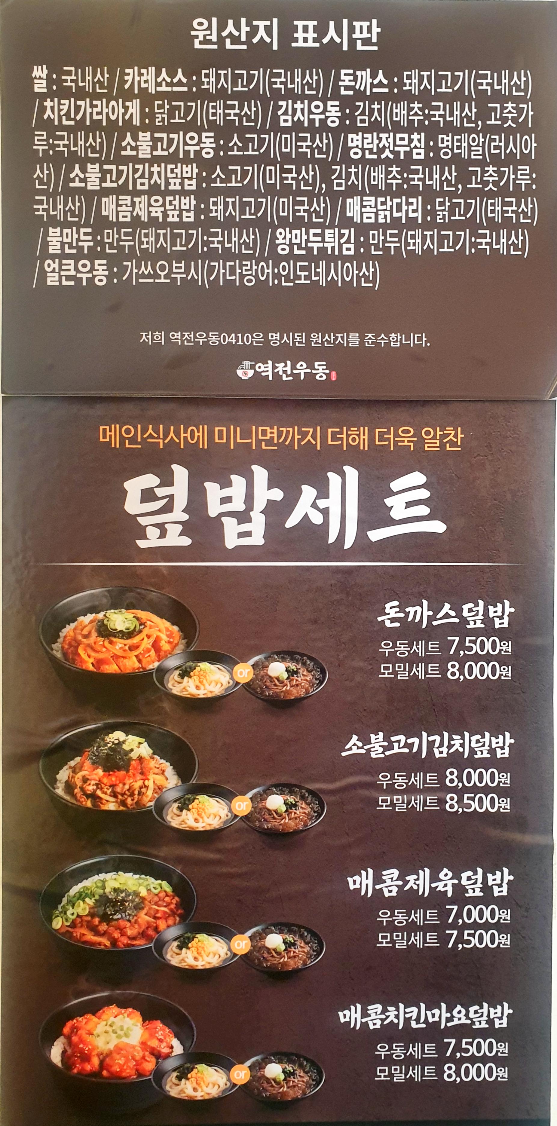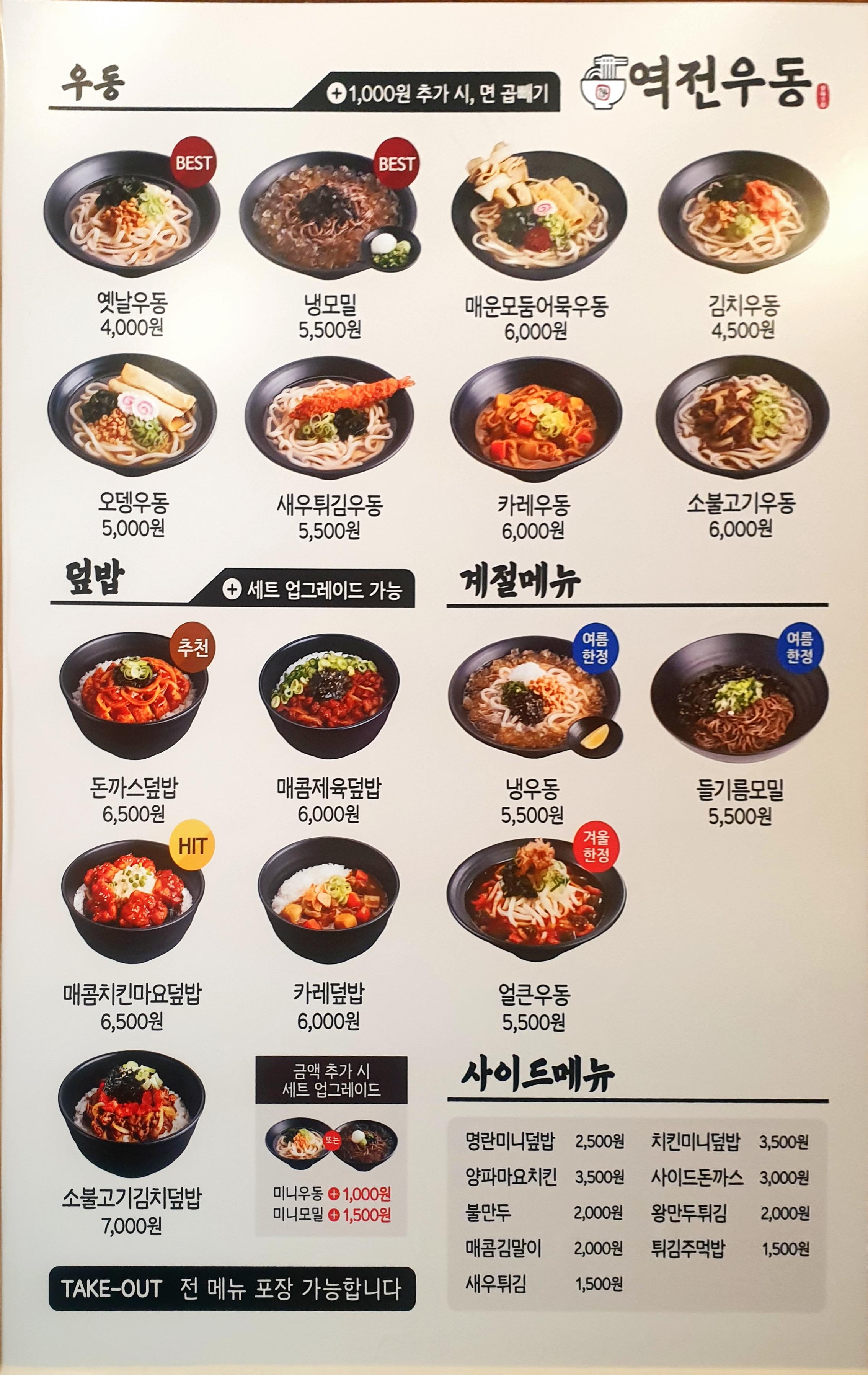 역전우동 메뉴와 가격 (2022년 4월 기준)