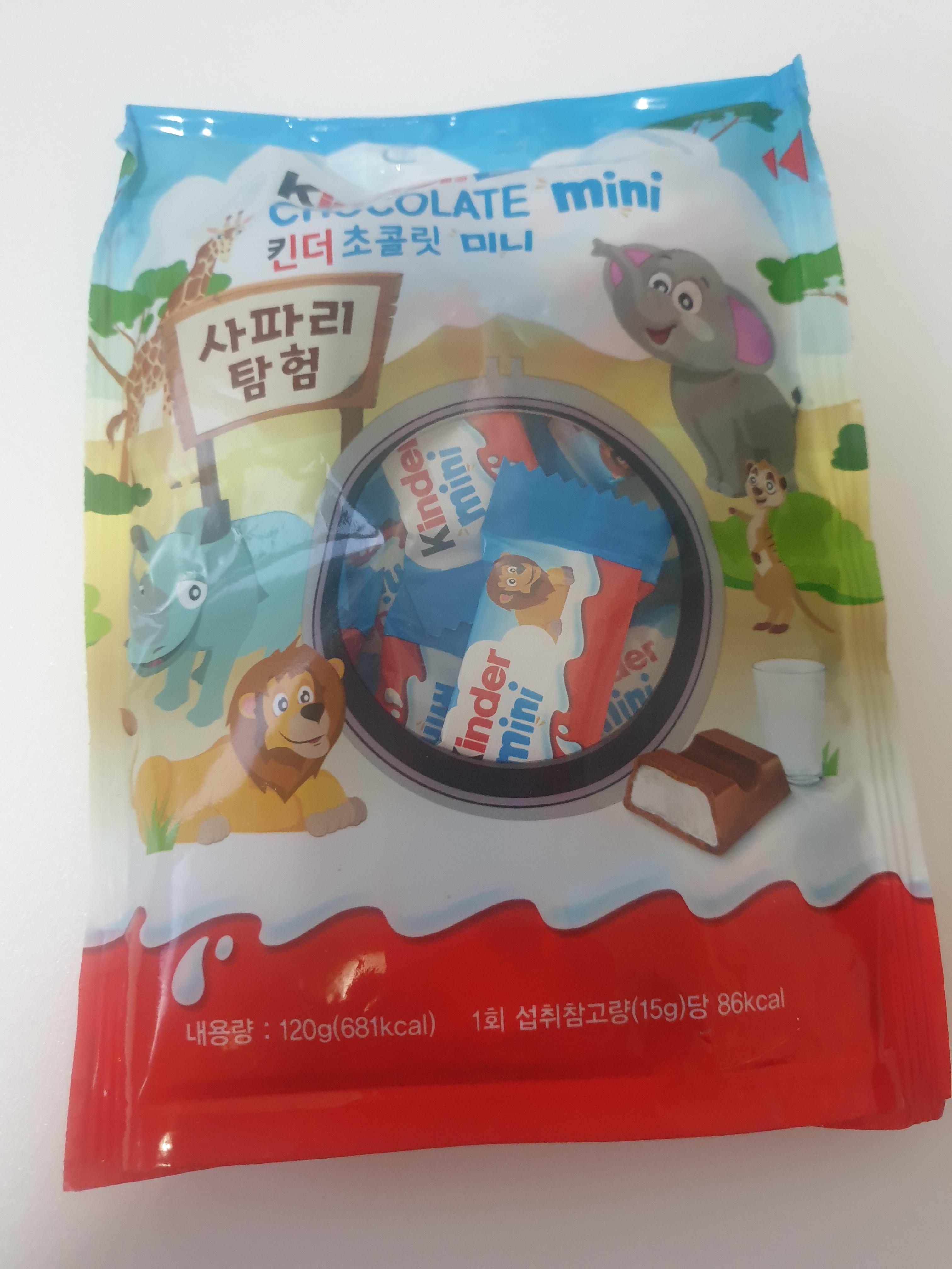 킨더초콜릿 미니는 20개가 들어있다. 120g이니까 하나에 6g이다. 사파리 그림이라서 귀엽다.