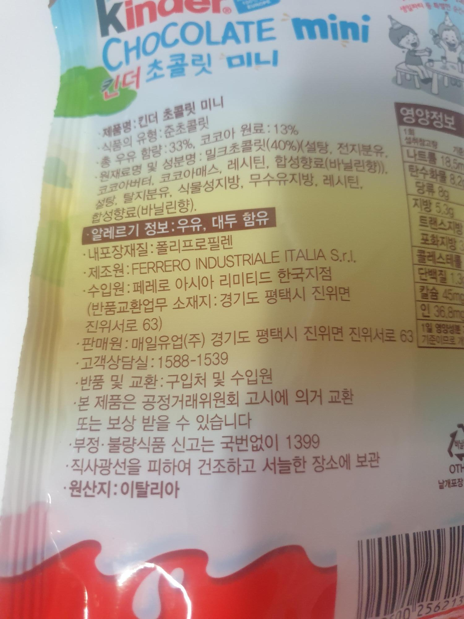 킨더는 페레로 제품이고 킨더미니는 이탈리아 생산품이다.