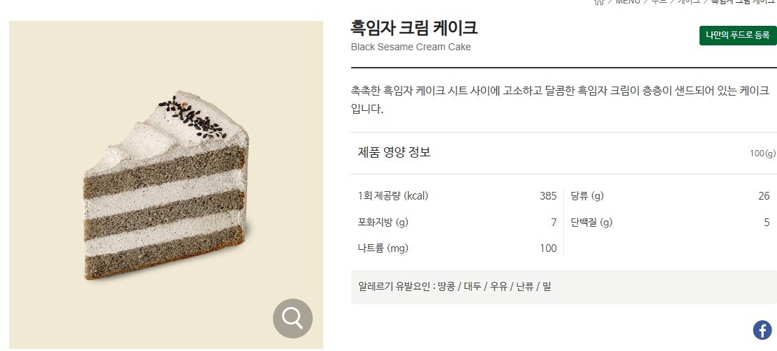 올해 초 나온 스타벅스 흑임자 크림 케이크이다.