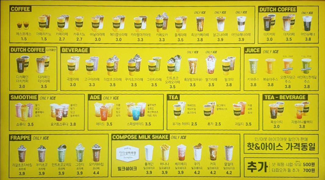 컴포즈 커피 메뉴 가격 2022년 5월 기준