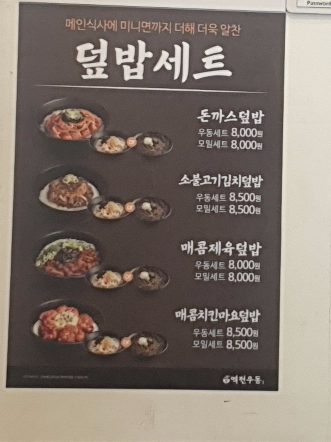 메인식사에 미니면을 더한 덮밥세트가 있었는데 가장 비싼 게 8,500원이면 요즘 물가에도 저렴한 편이다.