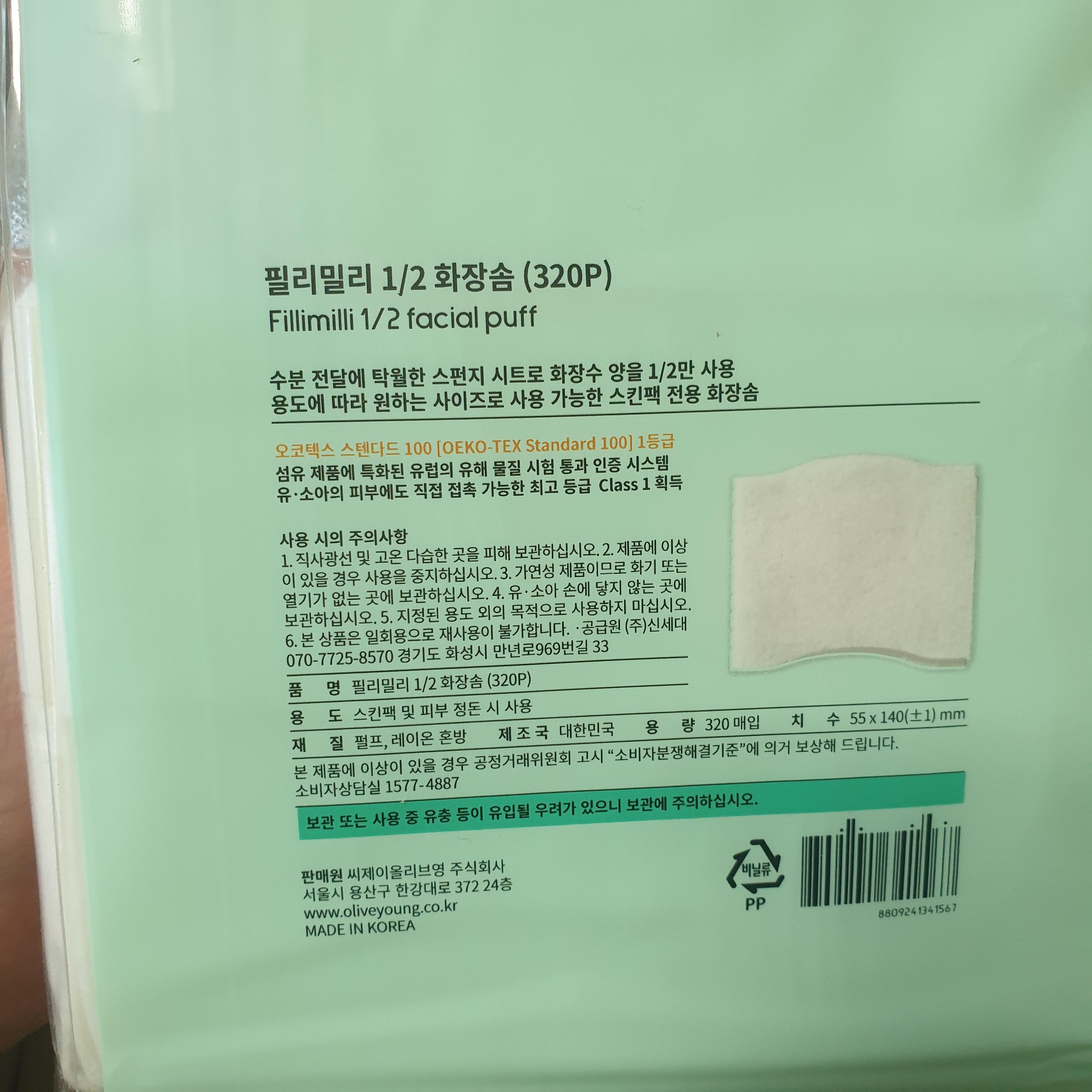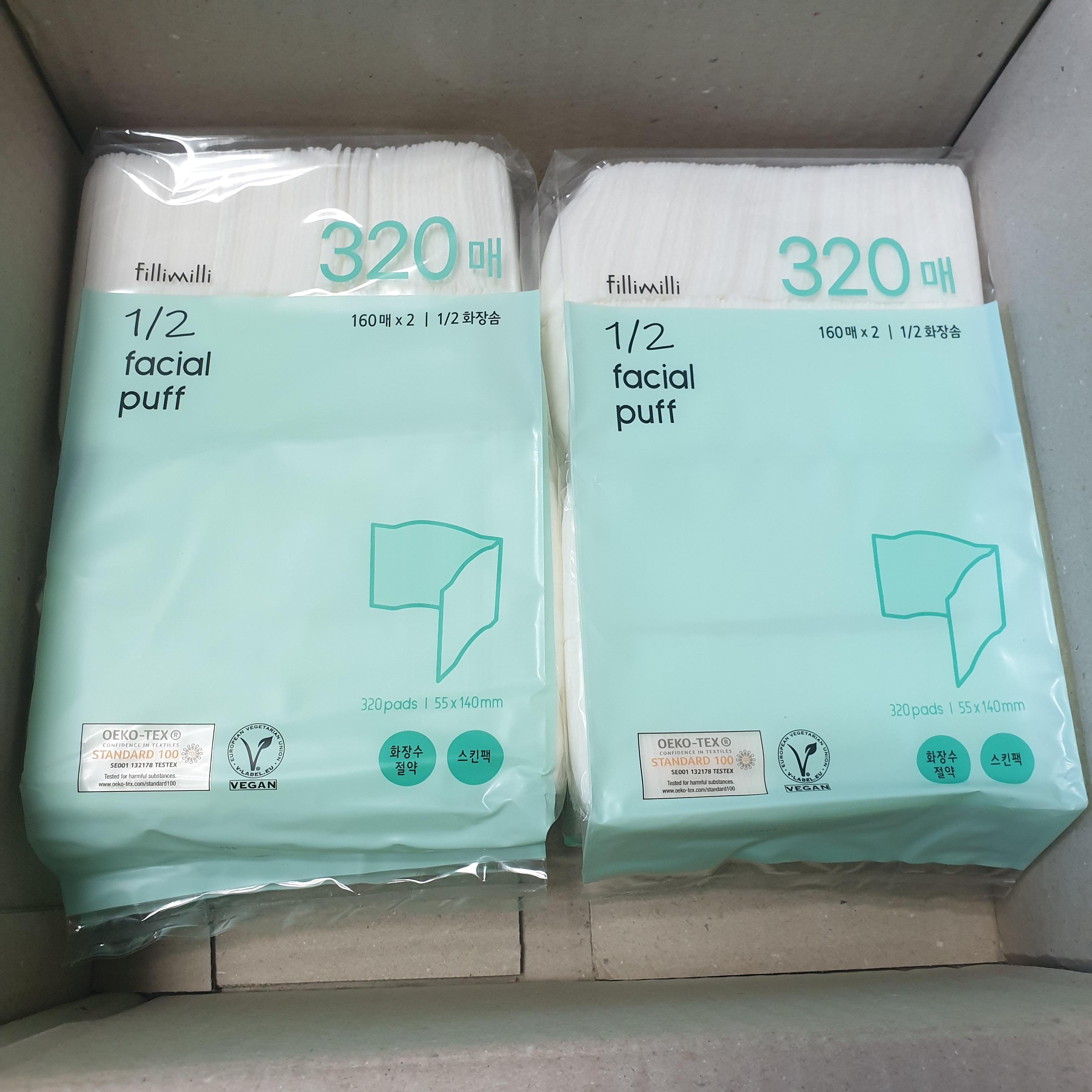 필리밀리 1/2 화장솜 320p는 55*140mm 사이즈이다.