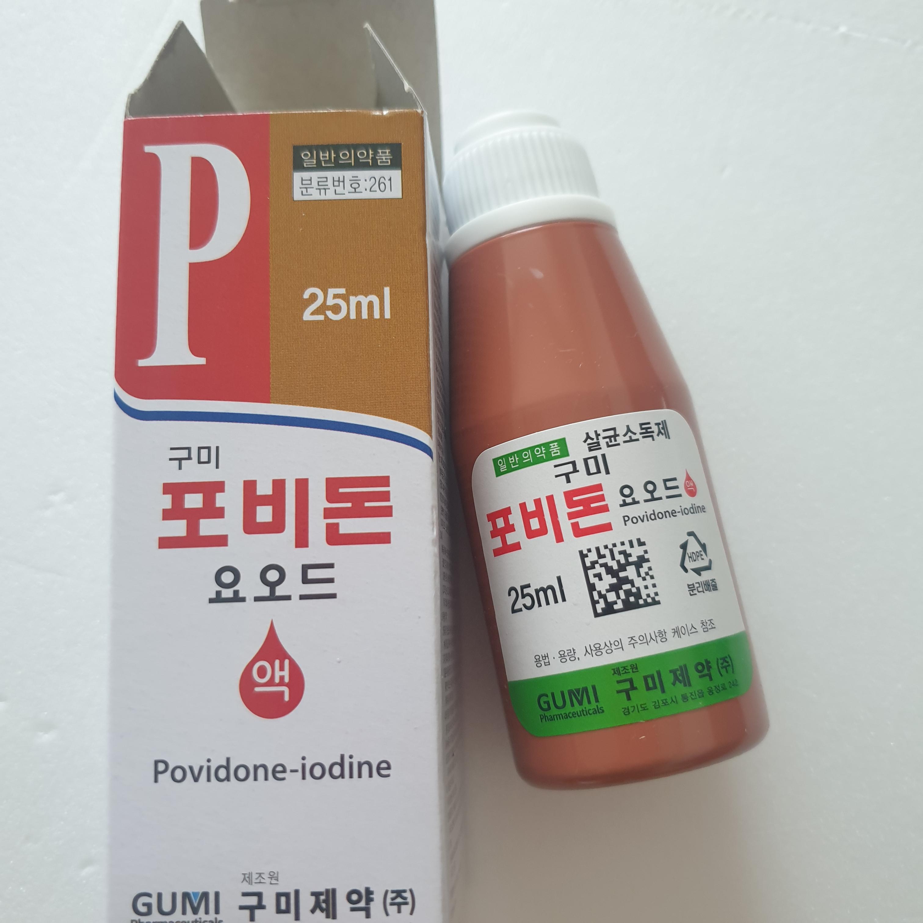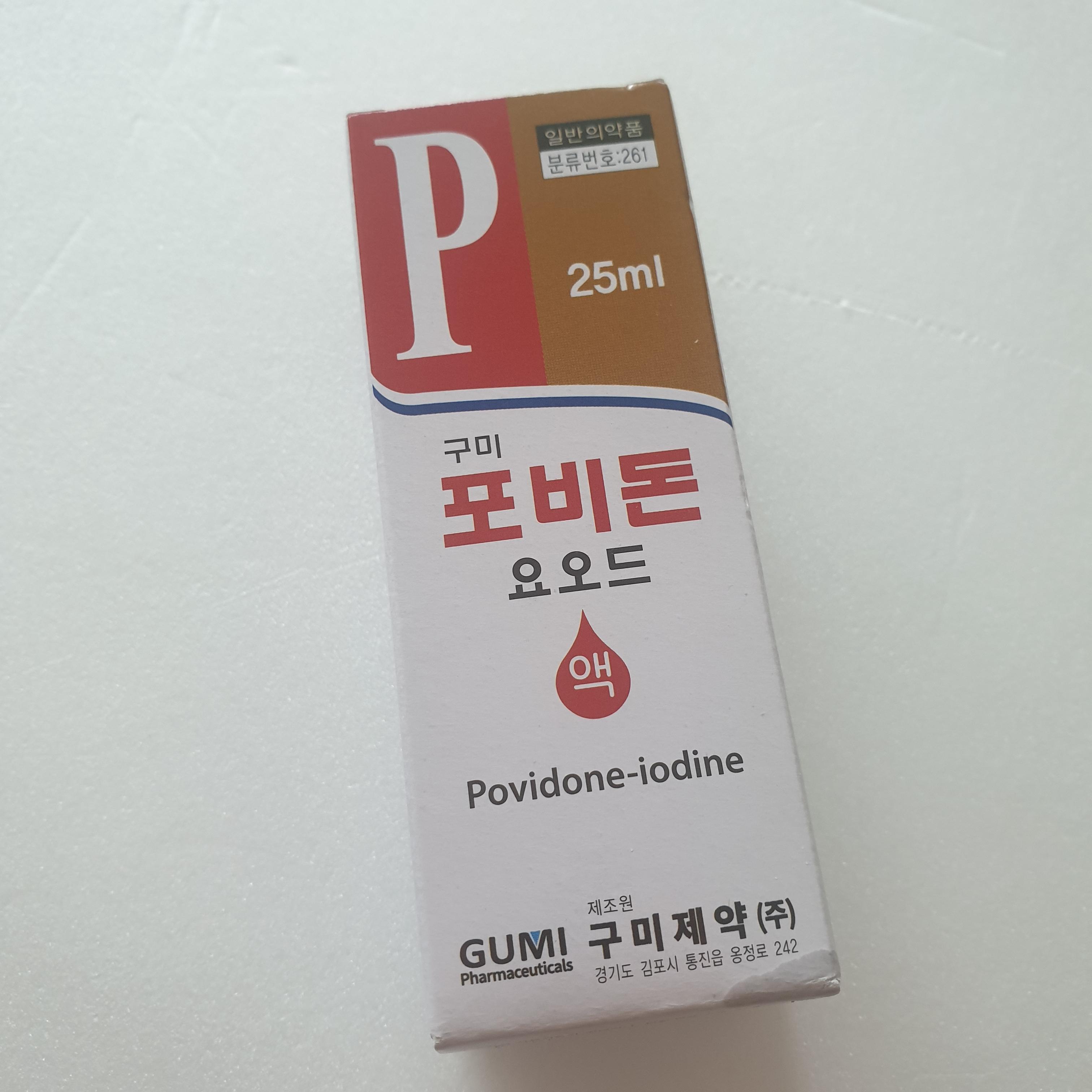 그래서 내가 산 것이 빨간약 포비돈 요오드액이고 구미제약에서 제조한 제품이다.