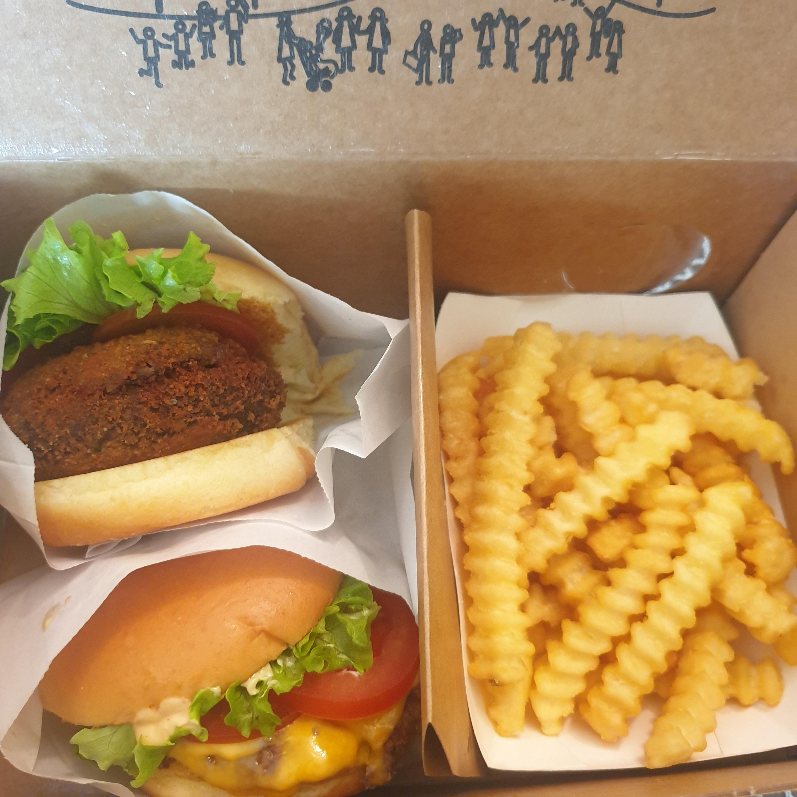 버섯패티와 고기패티가 들어간 쉑 스택도 있지만 그건 너무 내용물이 많아서 반반 나눠 먹는게 적당하다.