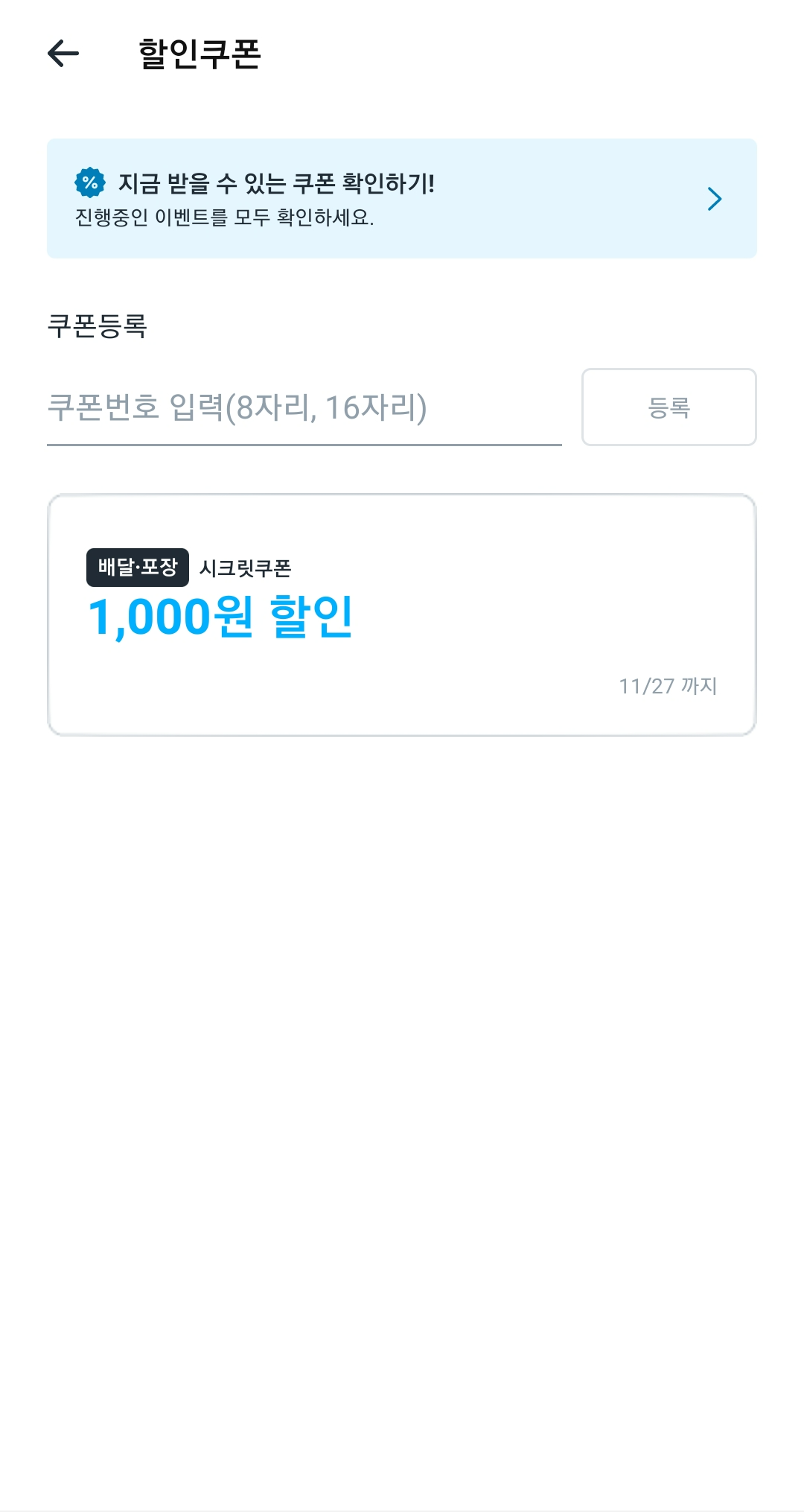 시크릿 쿠폰을 주는 기준이 무엇인지 모르겠는데 며칠 전에는 4천 원 쿠폰을 주고 이번에는 1천 원 쿠폰을 줬다.