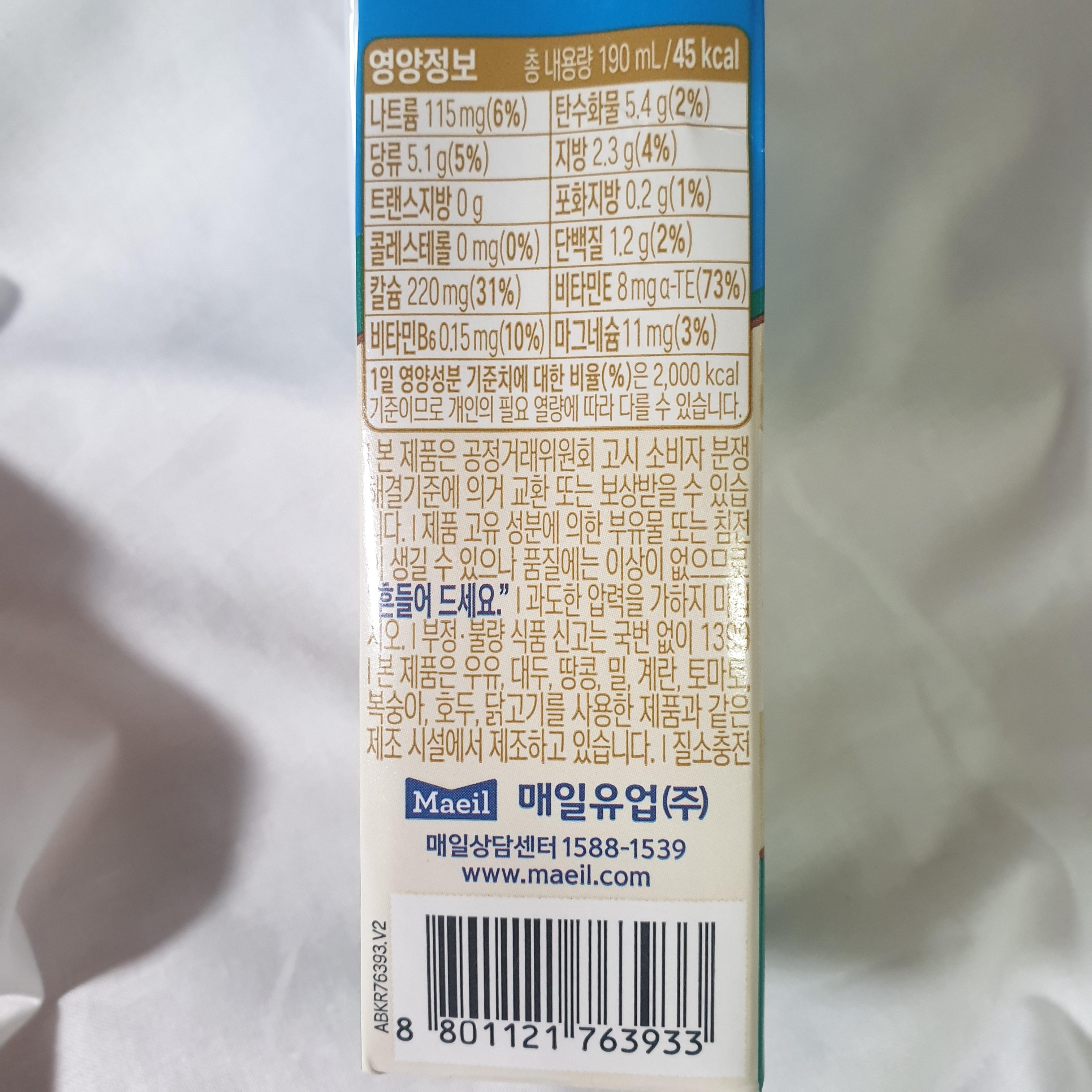 아몬드 브리즈 칼로리는 190ml에 45kcal로 낮은 편이다.
