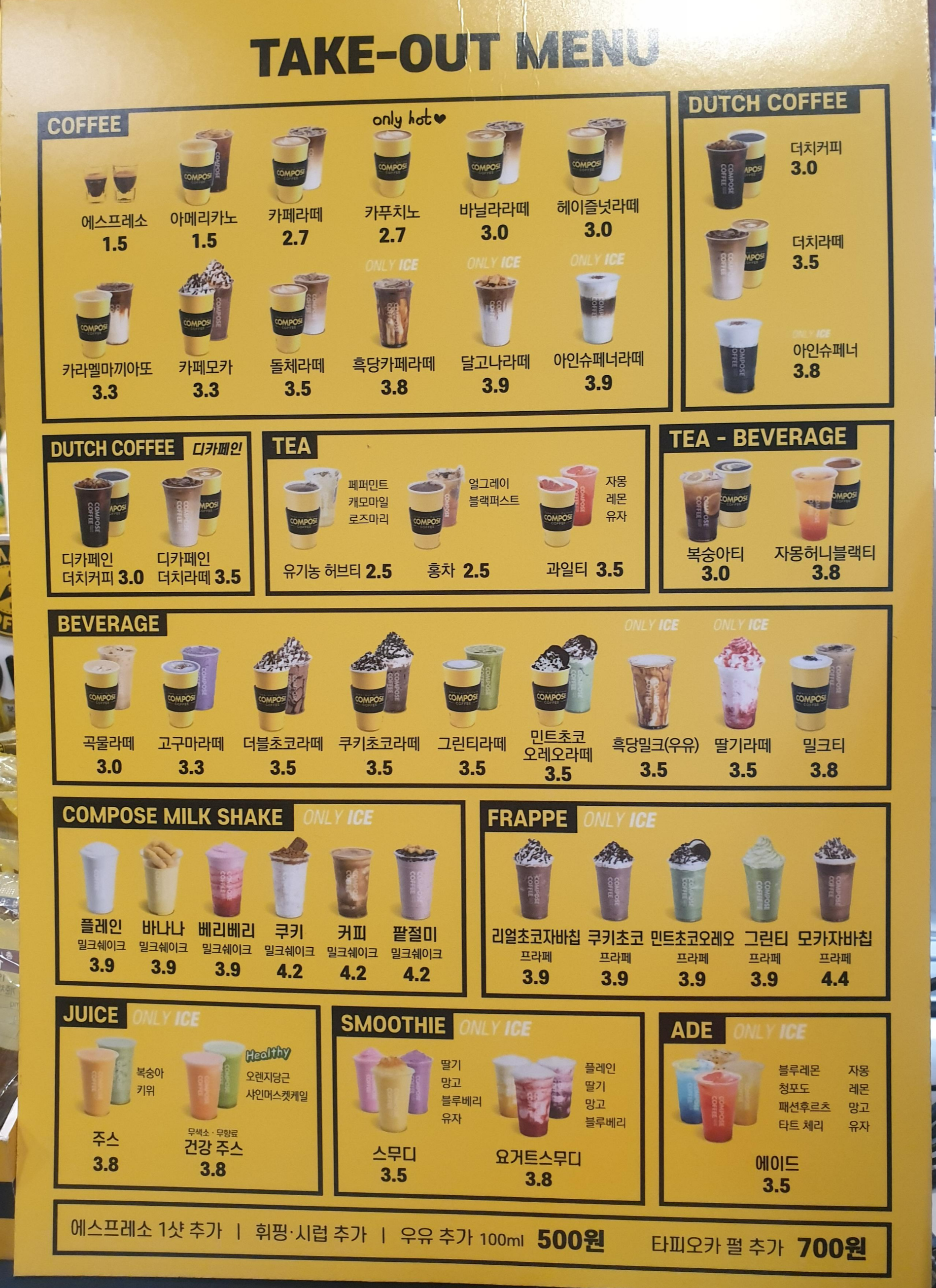 컴포즈 아메리카노 가격은 1,500원이었다. 요즘 커피숍 중에 가장 아메리카노 싼 곳이다.