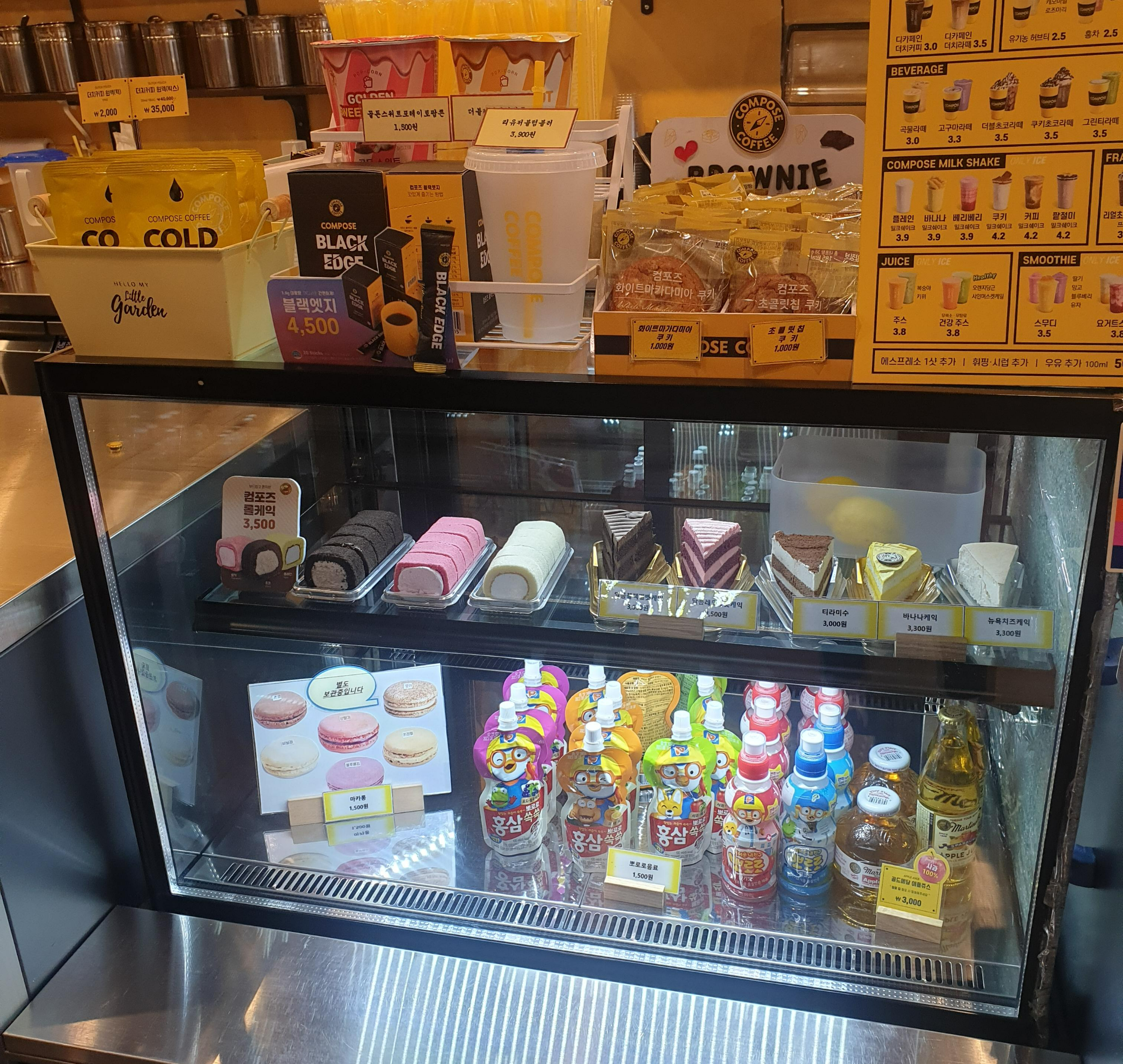 컴포즈 디저트로는 롤케이크, 쿠키, 케이크, 마카롱을 팔고 있었다.