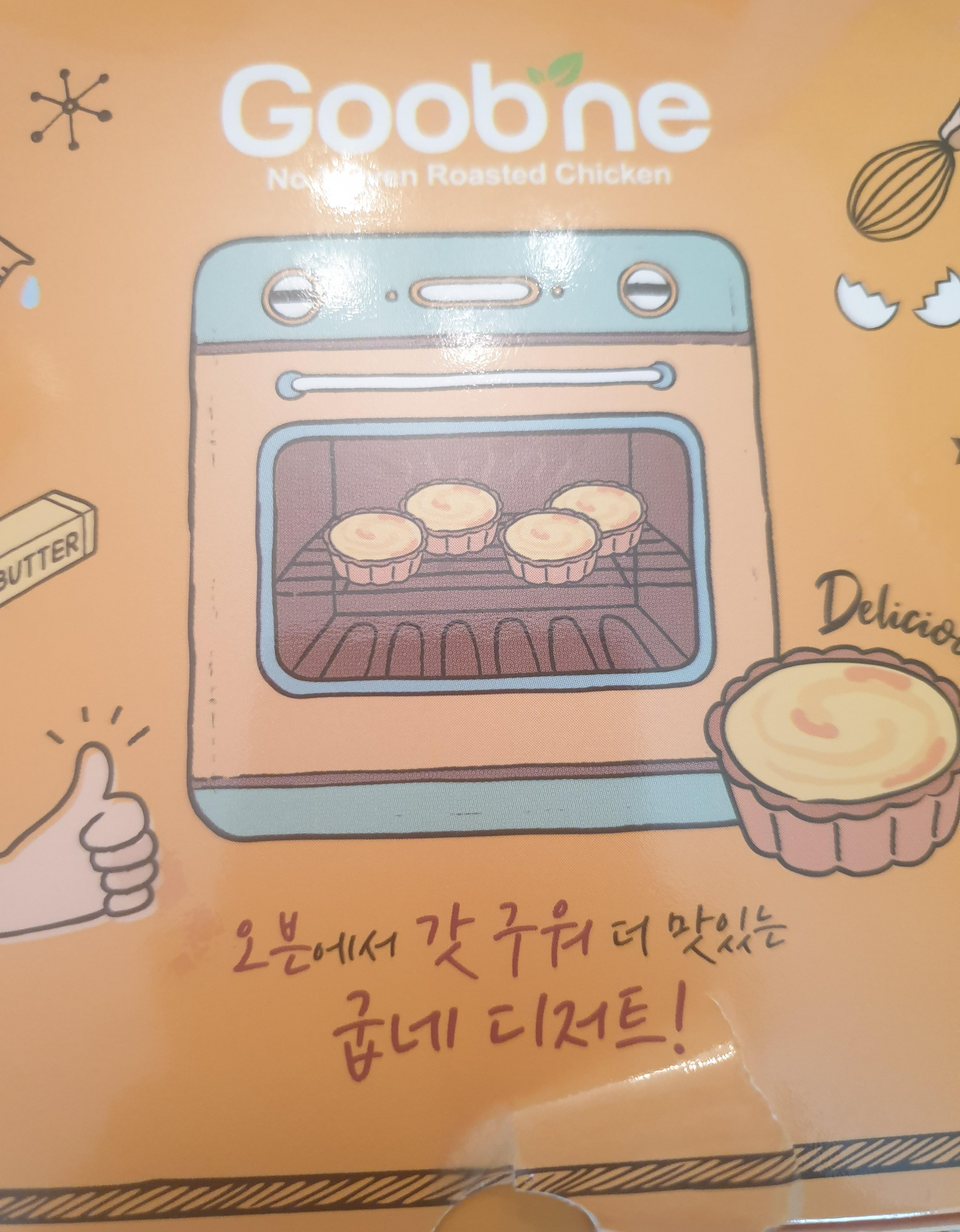 오븐에서 갓 구워 맛있는 굽네 디저트라고 적혀있는데 그림을 보니까 에그타르트도 파나 보다.