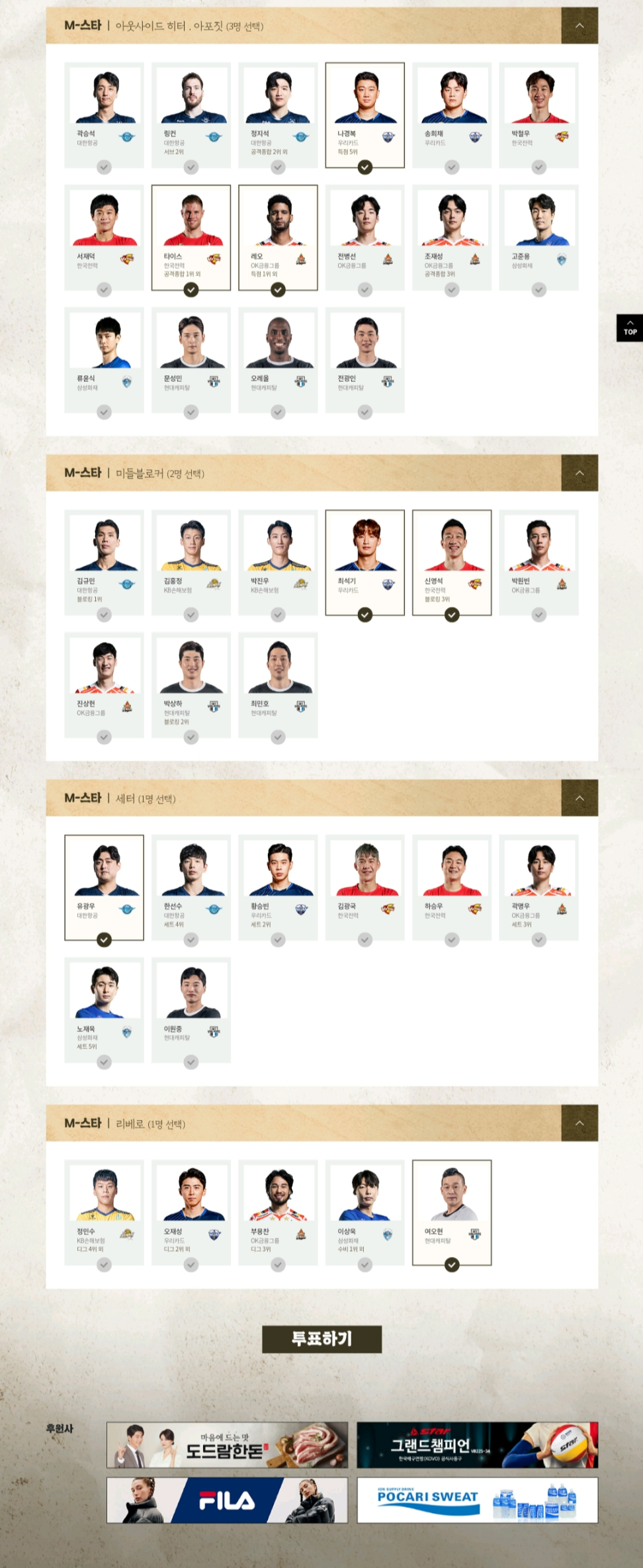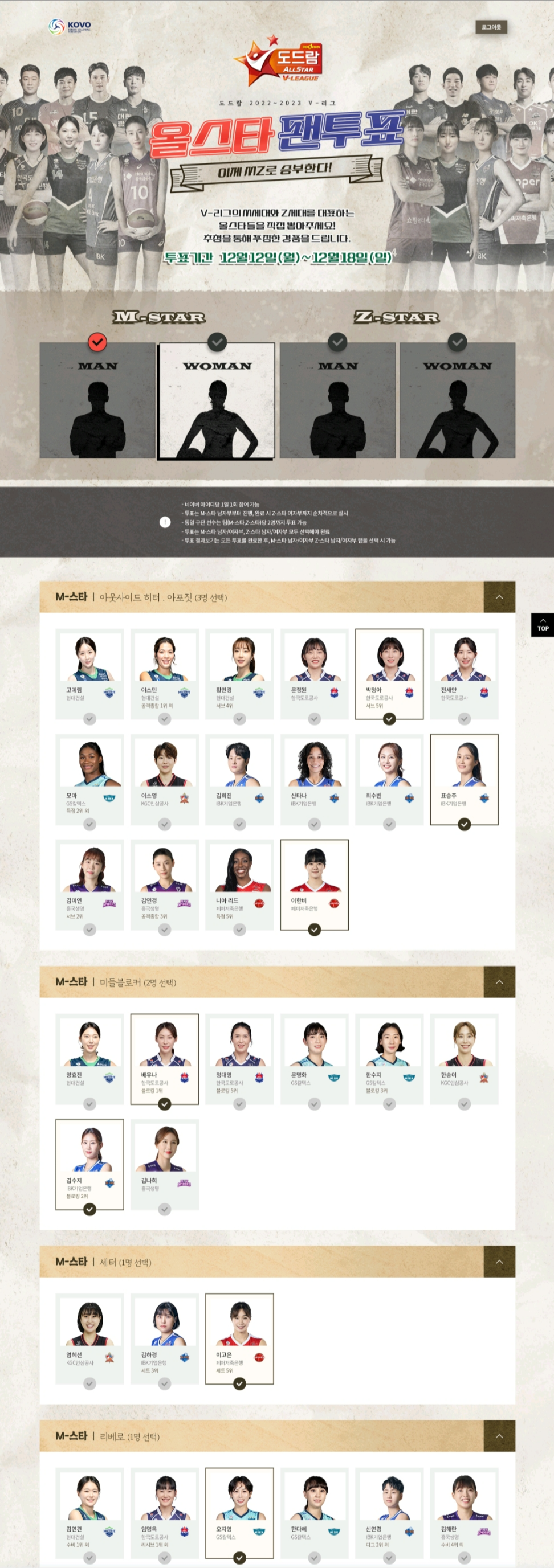 예전에 야구 올스타 투표하고(한 10년 전 ㅎ) 다른 스포츠 올스타투표는 처음인데 배구는 나이에 따라서 M스타,Z스타팀으로 선수를 나누고 있다.