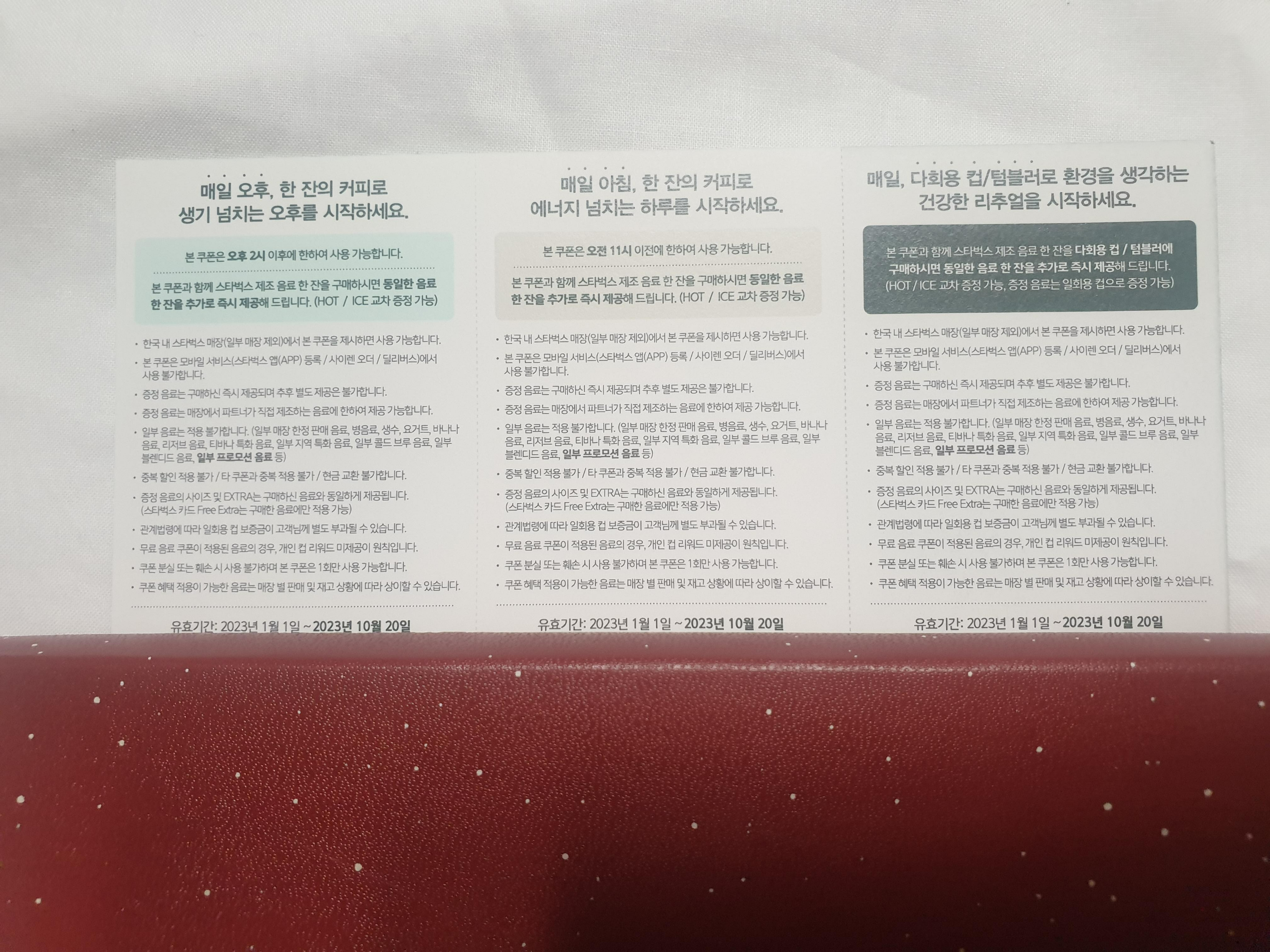 쿠폰은 세 가지 종류인데 초록, 흰색, 하늘색 이렇게 세 가지 색이 다 달라서 작년에 비해서 예쁘다.