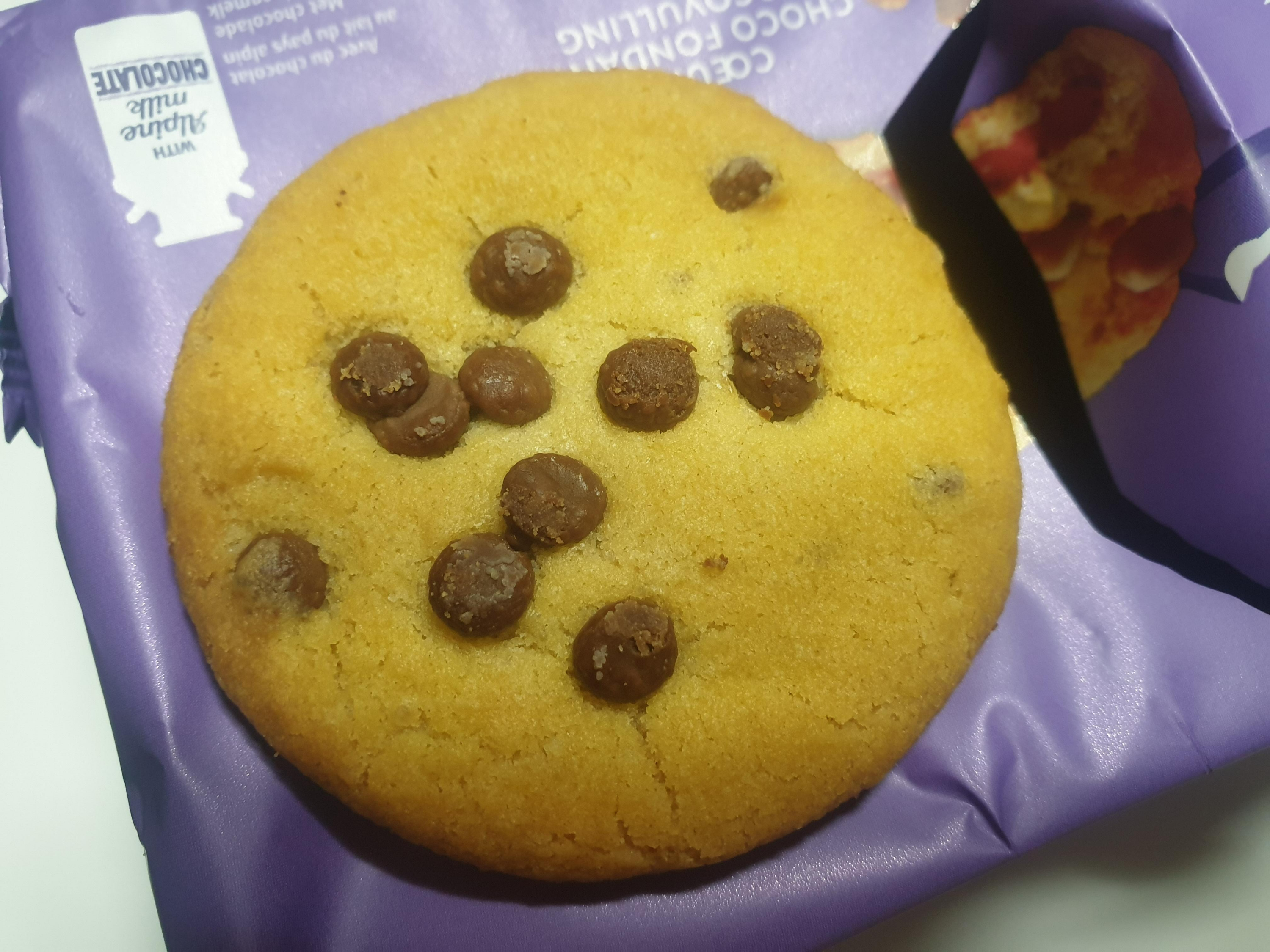 초코칩이 올라가 있고 안에 초콜릿이 들어있는 쿠키인데 한 번도 안 먹어봐서 사봤다.