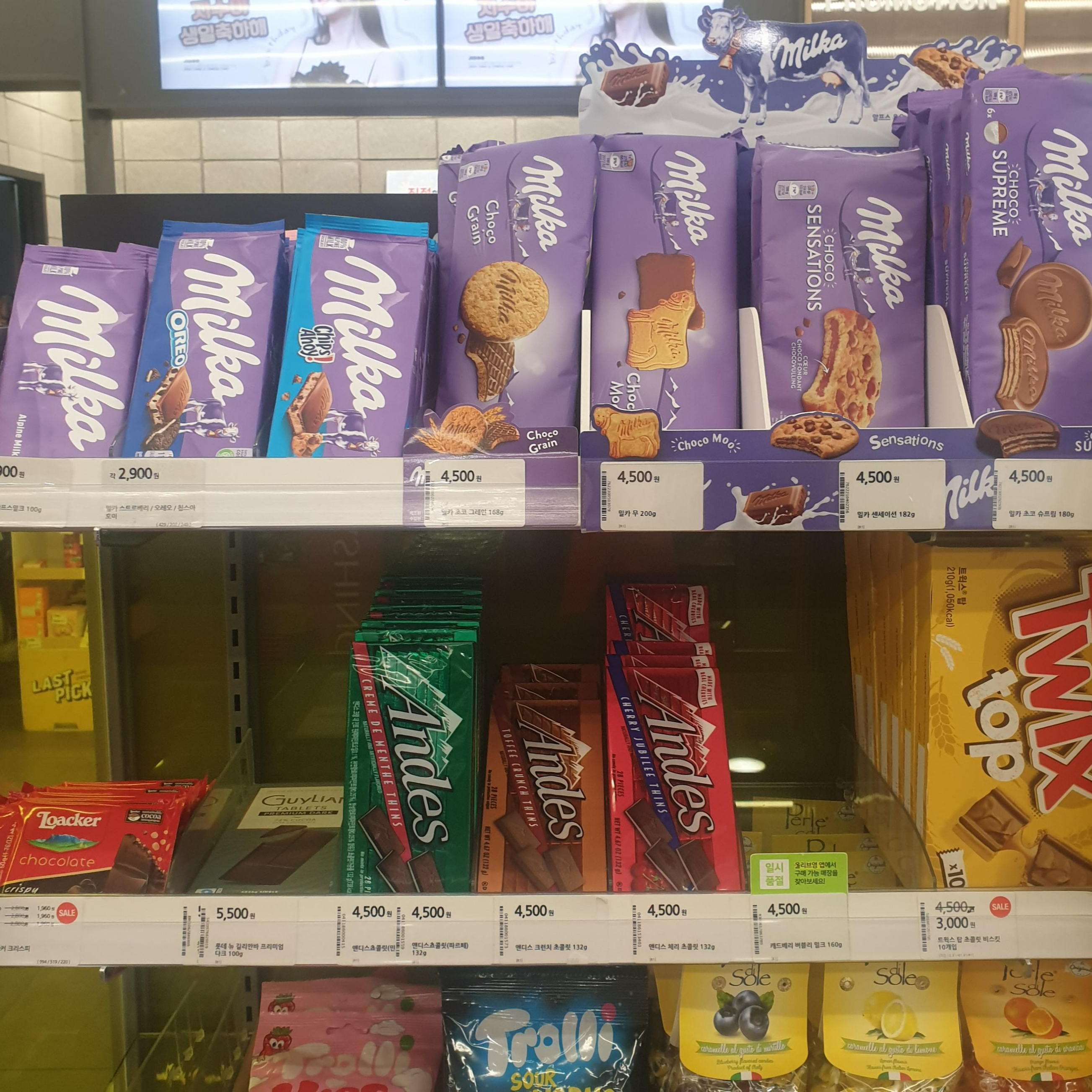올리브영에 간식을 사려고 가니까 밀카 초콜릿을 비롯한 수입 식품이 다양했다.