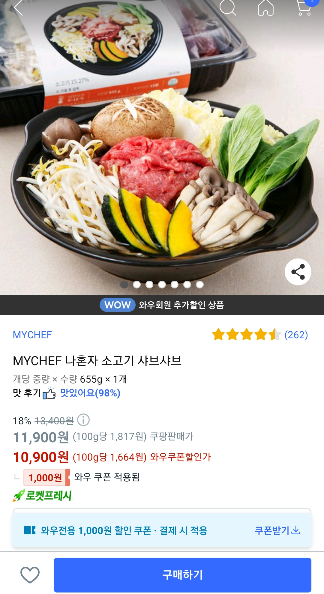 가입 첫날 로켓 와우 회원 할인혜택으로 밀키트를 굉장히 저렴하게 샀다.