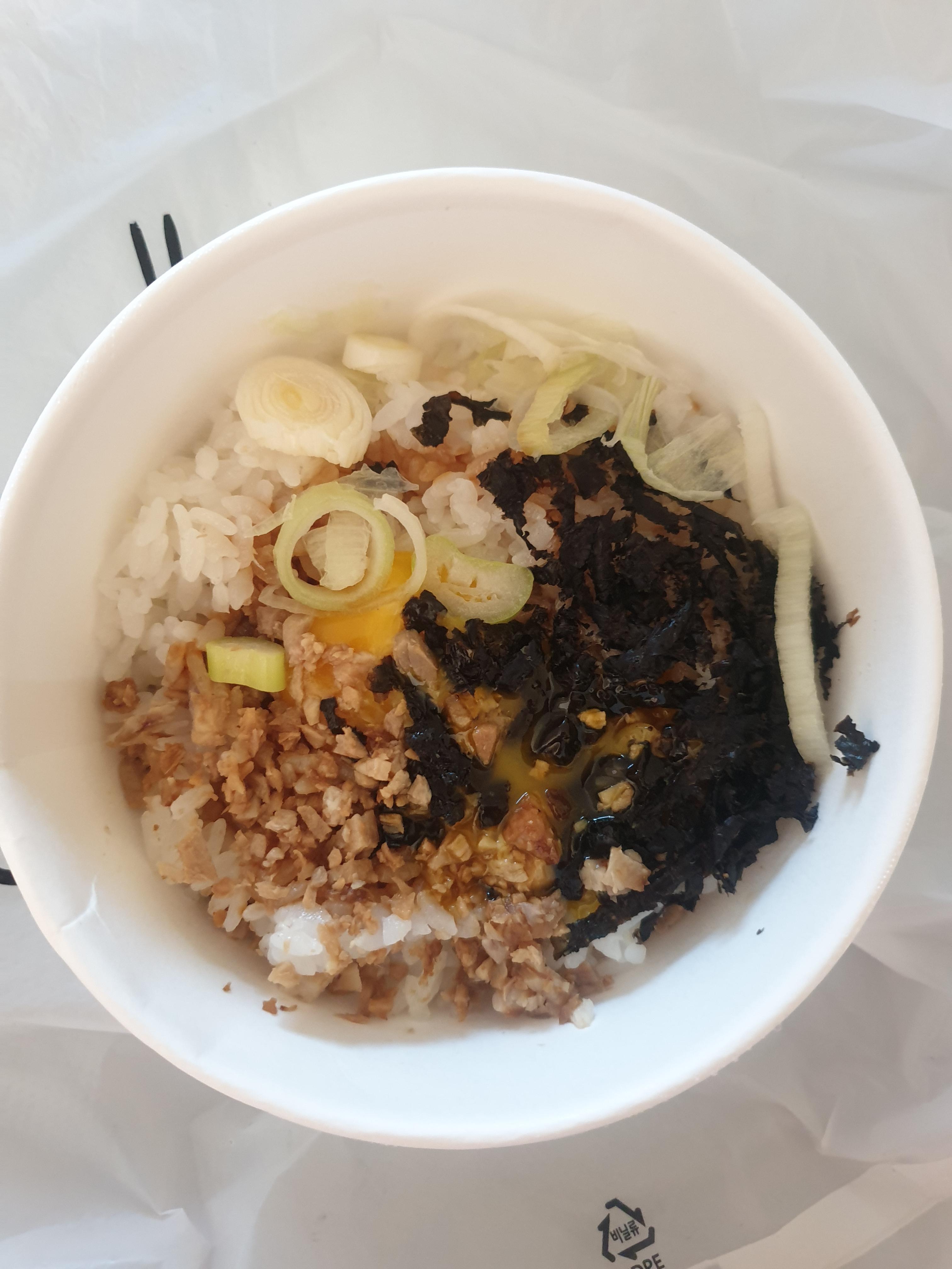 맛은 뭐 그냥 계란간장밥 맛인데 간장이 많아서 짰다.