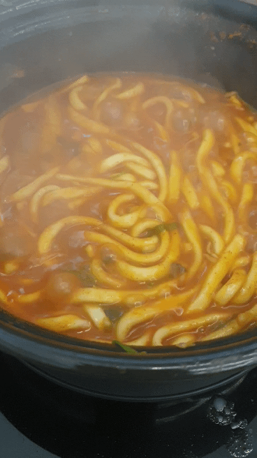 고기 다 먹고는 빨리 칼국수를 넣었다.