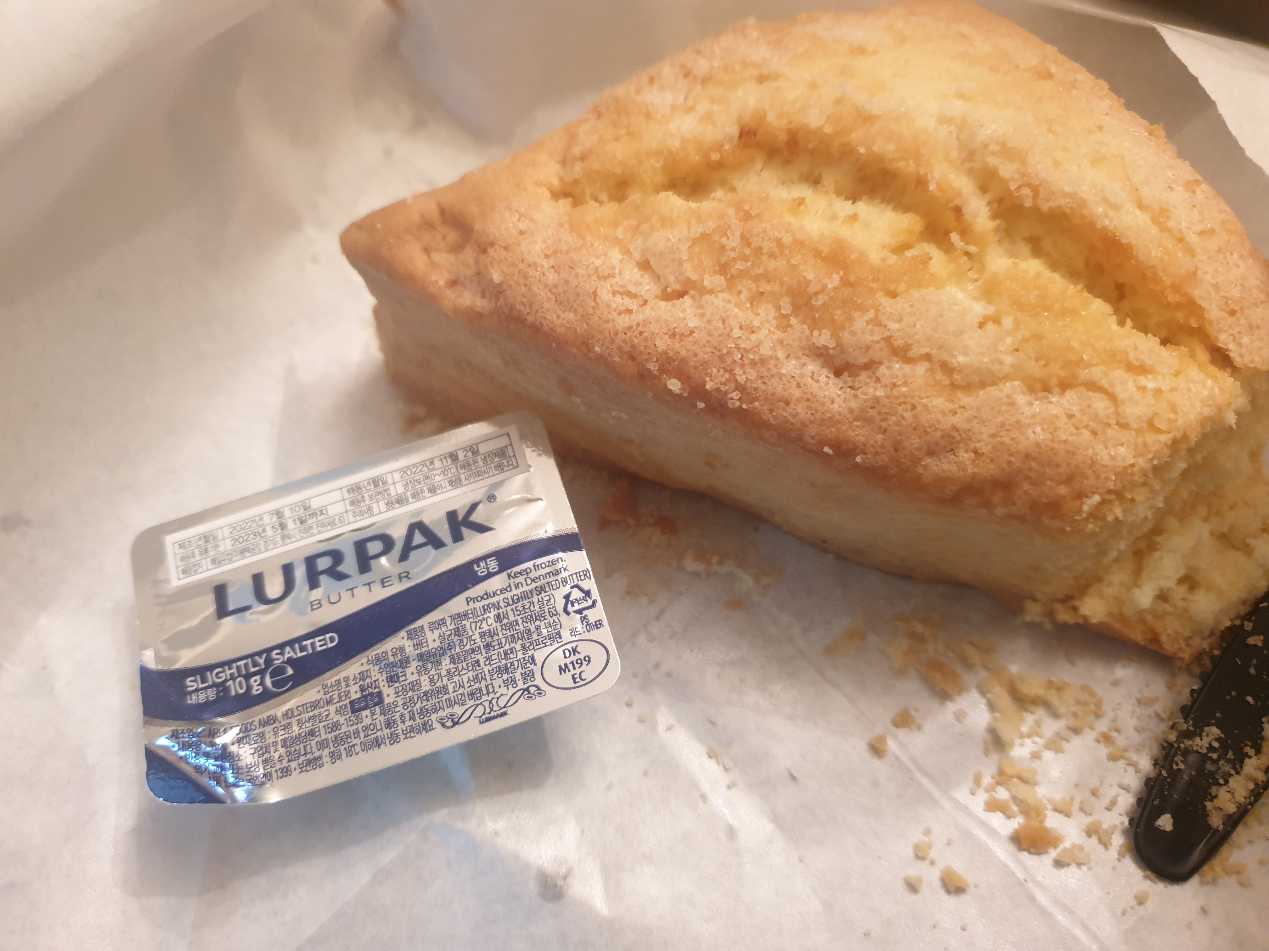 오랜만에 스타벅스에서 스콘과 커피를 포장해서 먹었다. 아침은 먹었고 점심을 먹어야 하는데 별로 먹고 싶은 게 없어서 커피 기프티콘을 사용할 겸 스타벅스에 갔다. 케이크를 사고 싶었는데 케이크는 품절이라서 대신 클래식 스콘과 버터로 대신했다. 스타벅스에서 파는 버터는 루어팍 버터 10g이었고 가격은 500원이었다. "slightly salted butter" 라고 적혀있는 가염버터였다.