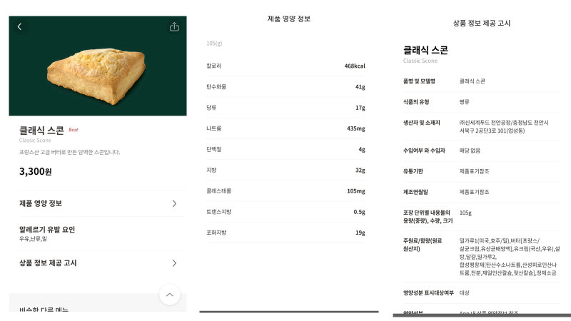 스타벅스 스콘을 사이렌 오더로 주문할 때 볼 수 있는 옵션이다.