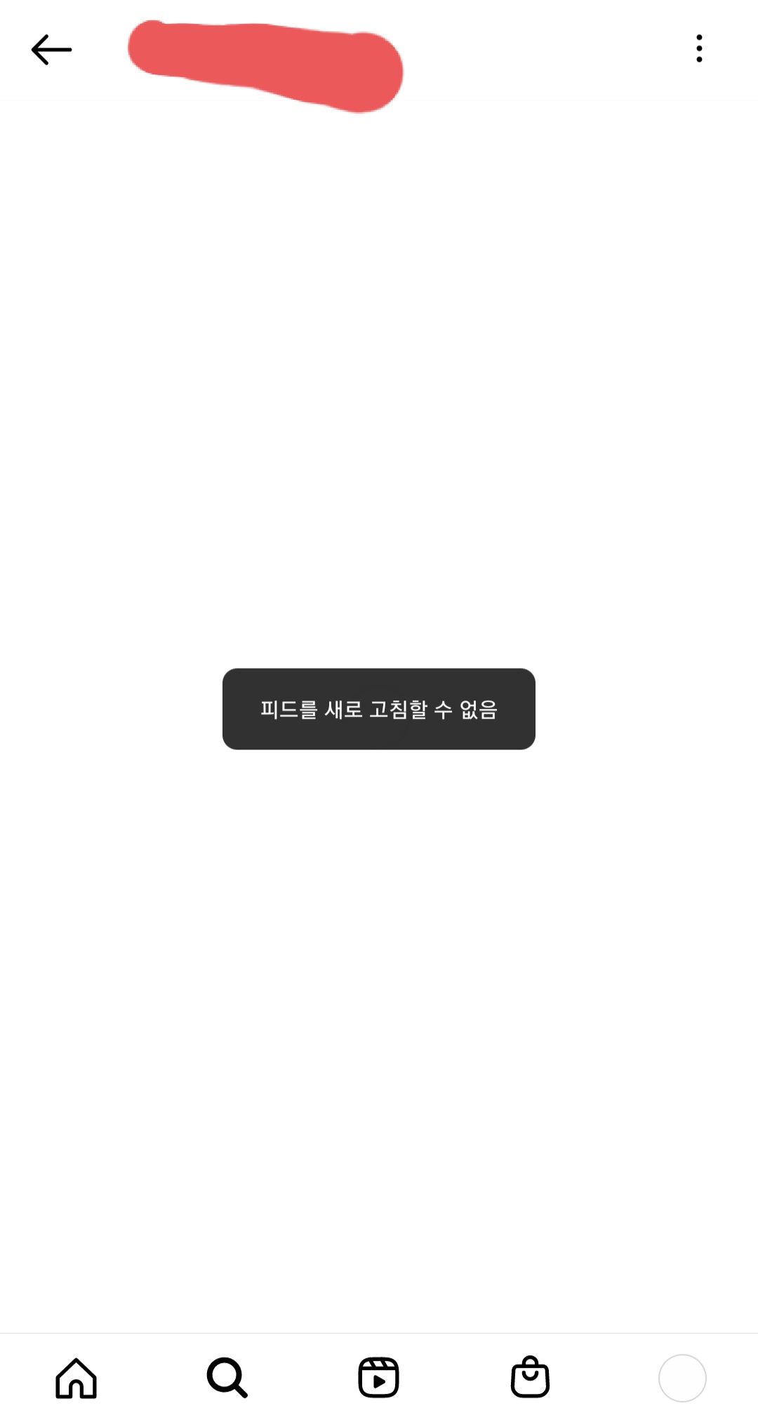 그랬더니 프로필은 뜨는데 게시글은 <피드를 새로 고침할 수 없음>이 뜨면서 보이지 않았다.