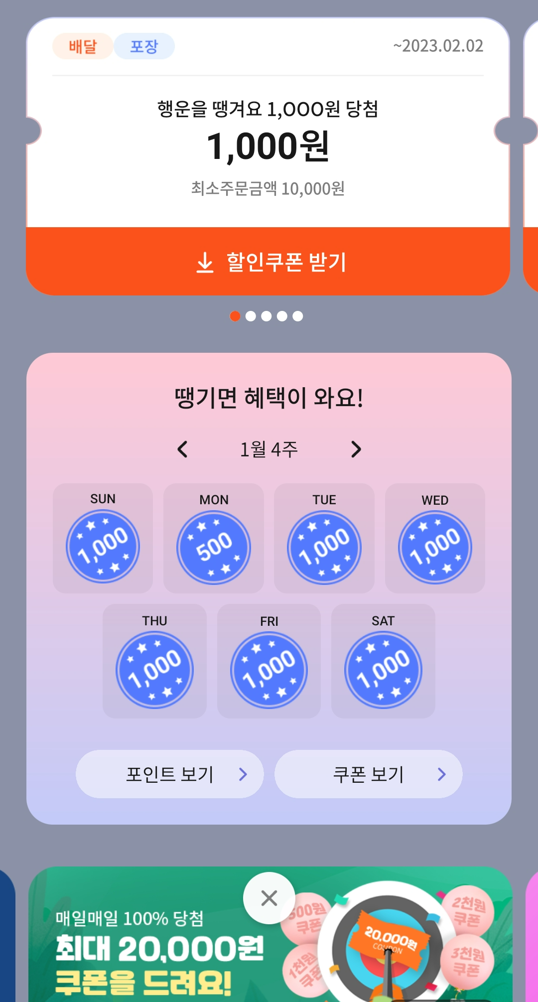 다른 어플은 쿠폰도 별로 없고 쿠폰 조건이 까다롭다.