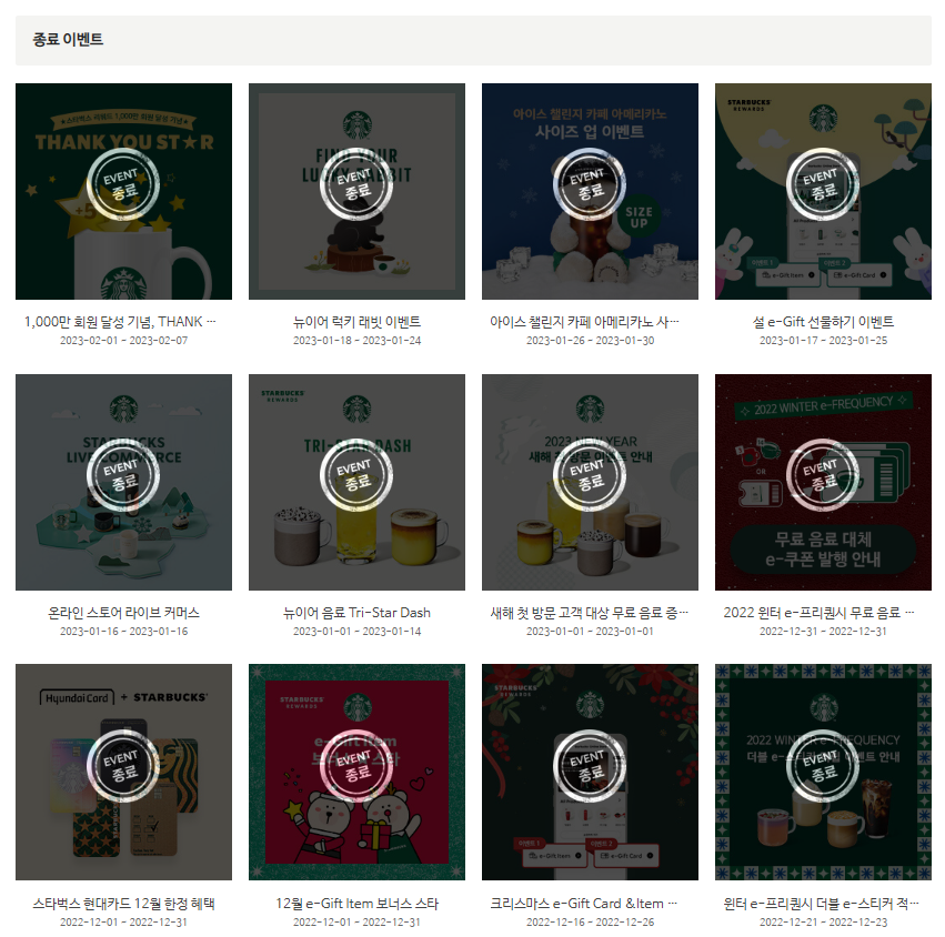 오랜만에 스타벅스에서 선물을 사서 줄 일이 있어서 이왕 사는 거 별을 모아볼까 해서 e-gift 아이템을 사서 결제할 때 쓰려고 했는데 2023년부터는 e-gift item을 선물하면 결제완료당 별 1개씩 주는 이벤트가 없다.