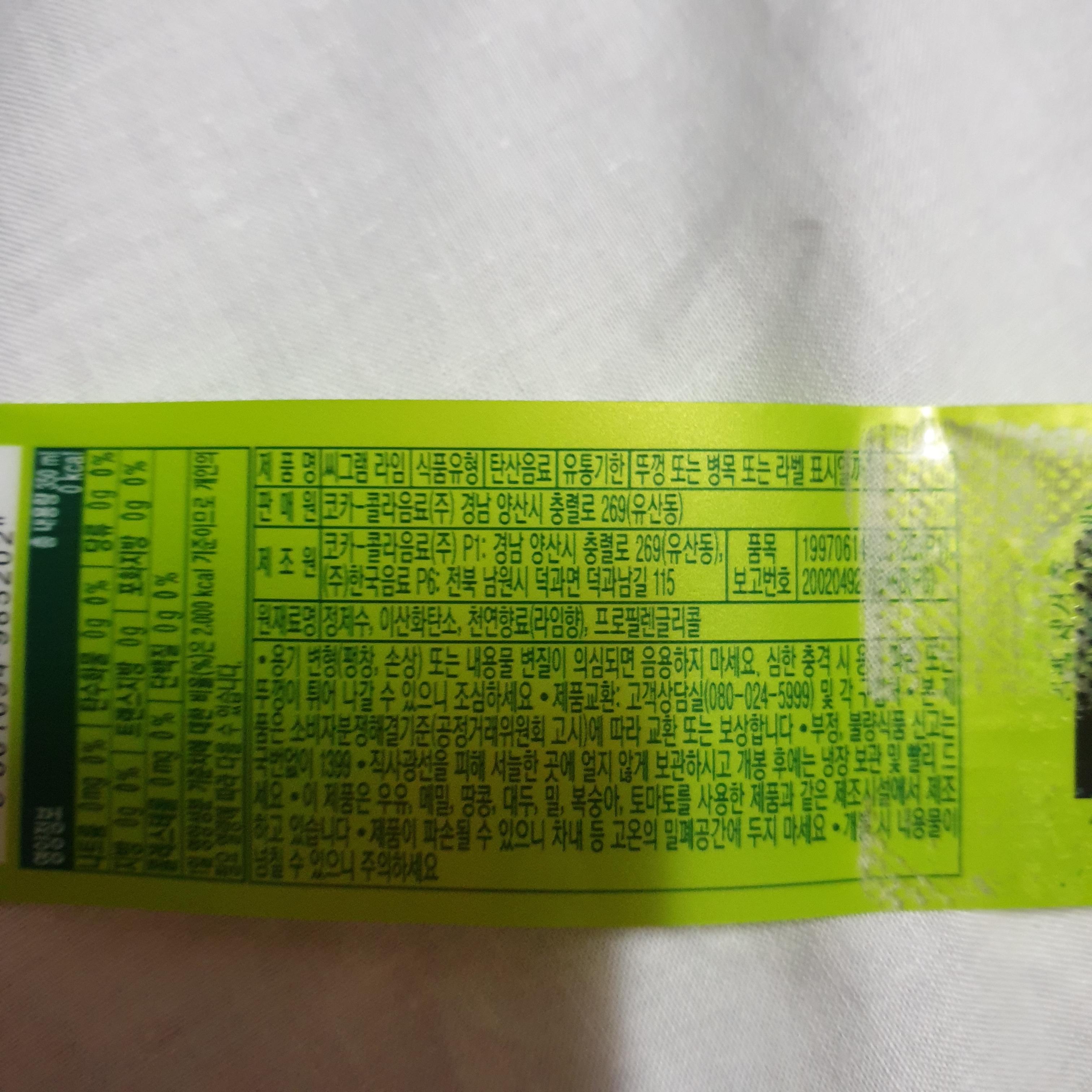 씨그램 제조원은 코카콜라음료(주)이고 원재료는 정제수, 이산화탄소, 천연향료(라임향), 프로필렌글리콜이 들어가 있다.