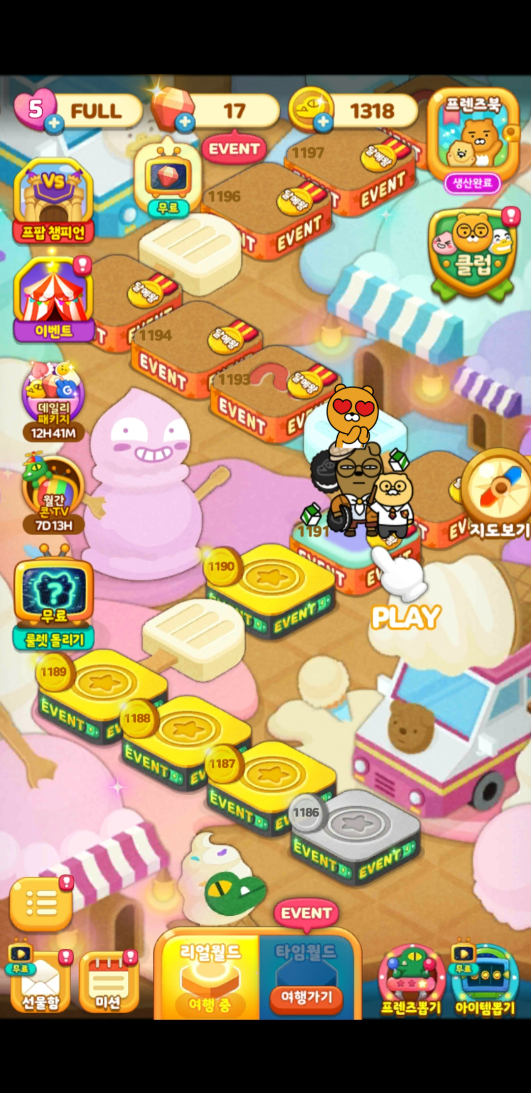 처음에는 리얼월드만 있다가 어느순간 타임월드도 생겼는데 타임월드는 별로 재미가 없어서 딱 한 번 하고 안 하고 있다.