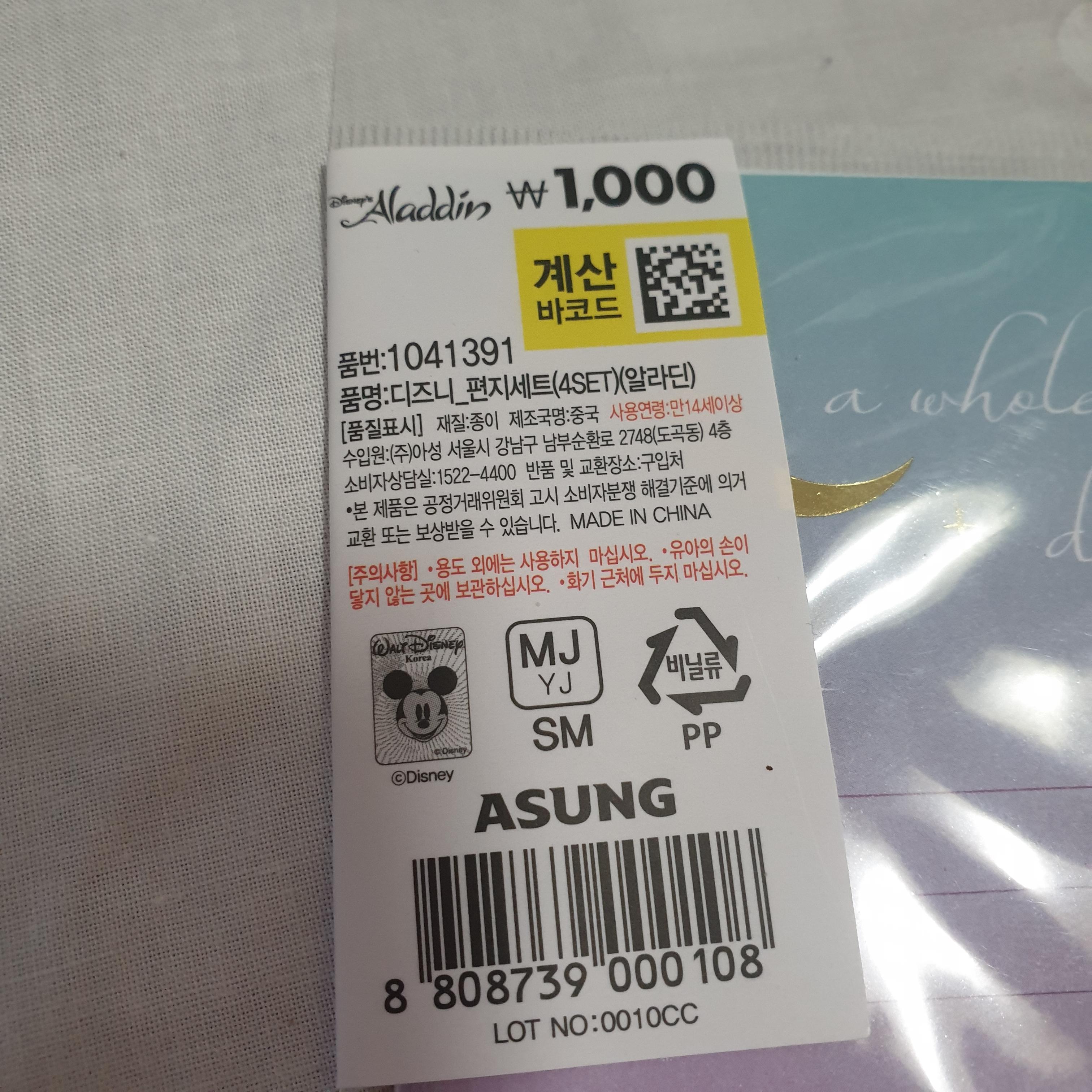 디즈니 편지세트 품번은 1041391이고 같은 품번인지는 모르겠는데 이거 말고도 디즈니 캐릭터 편지지가 여러 개 있었다.