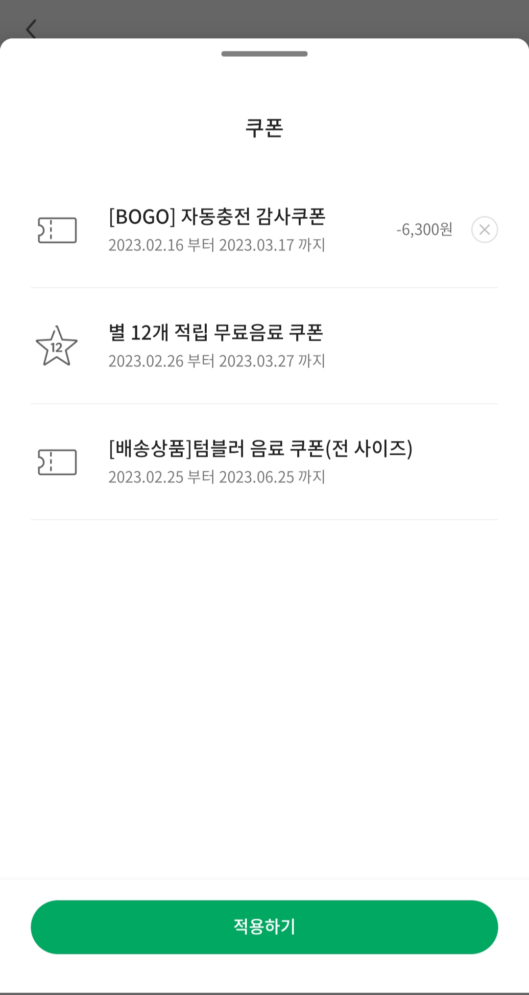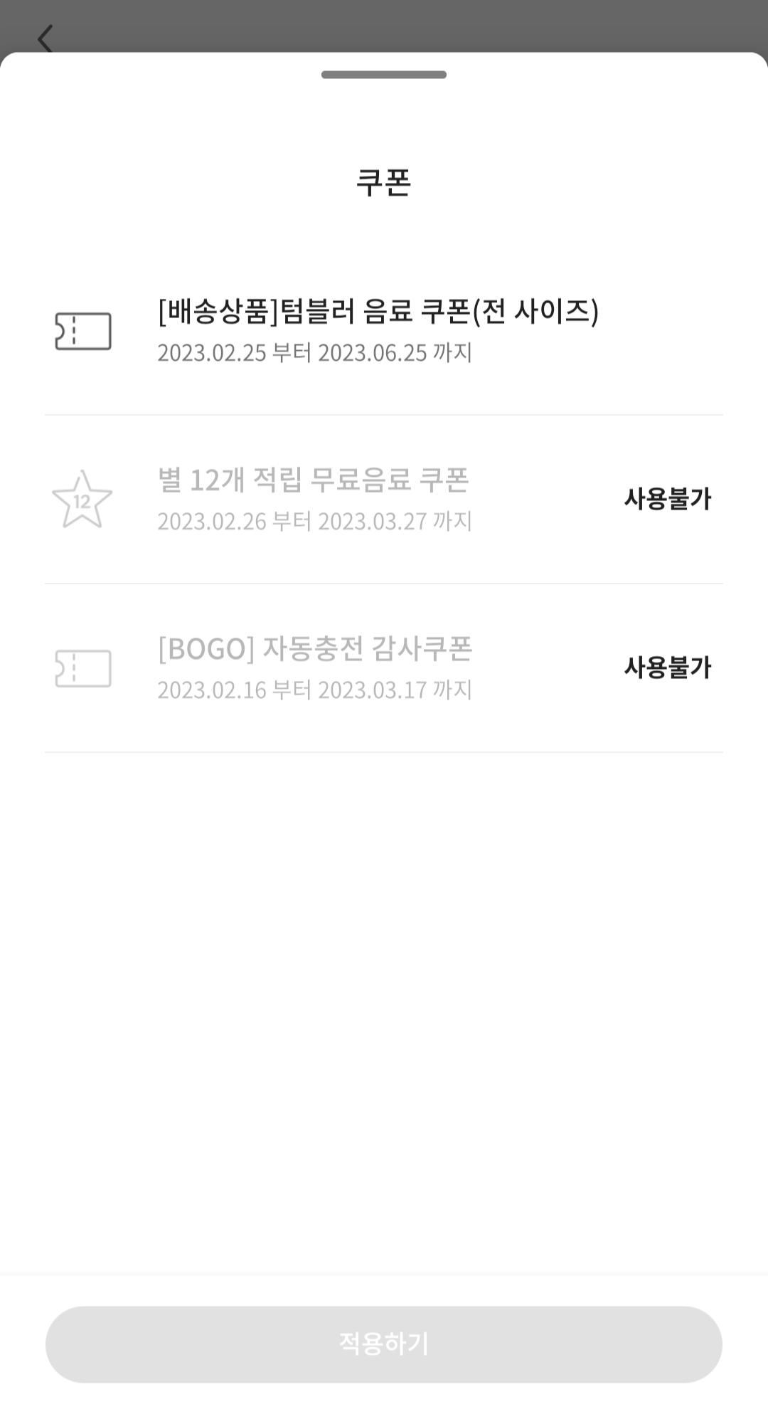 사용기준을 읽어보면 텀블러 쿠폰이 가장 제한 사항이 적다.