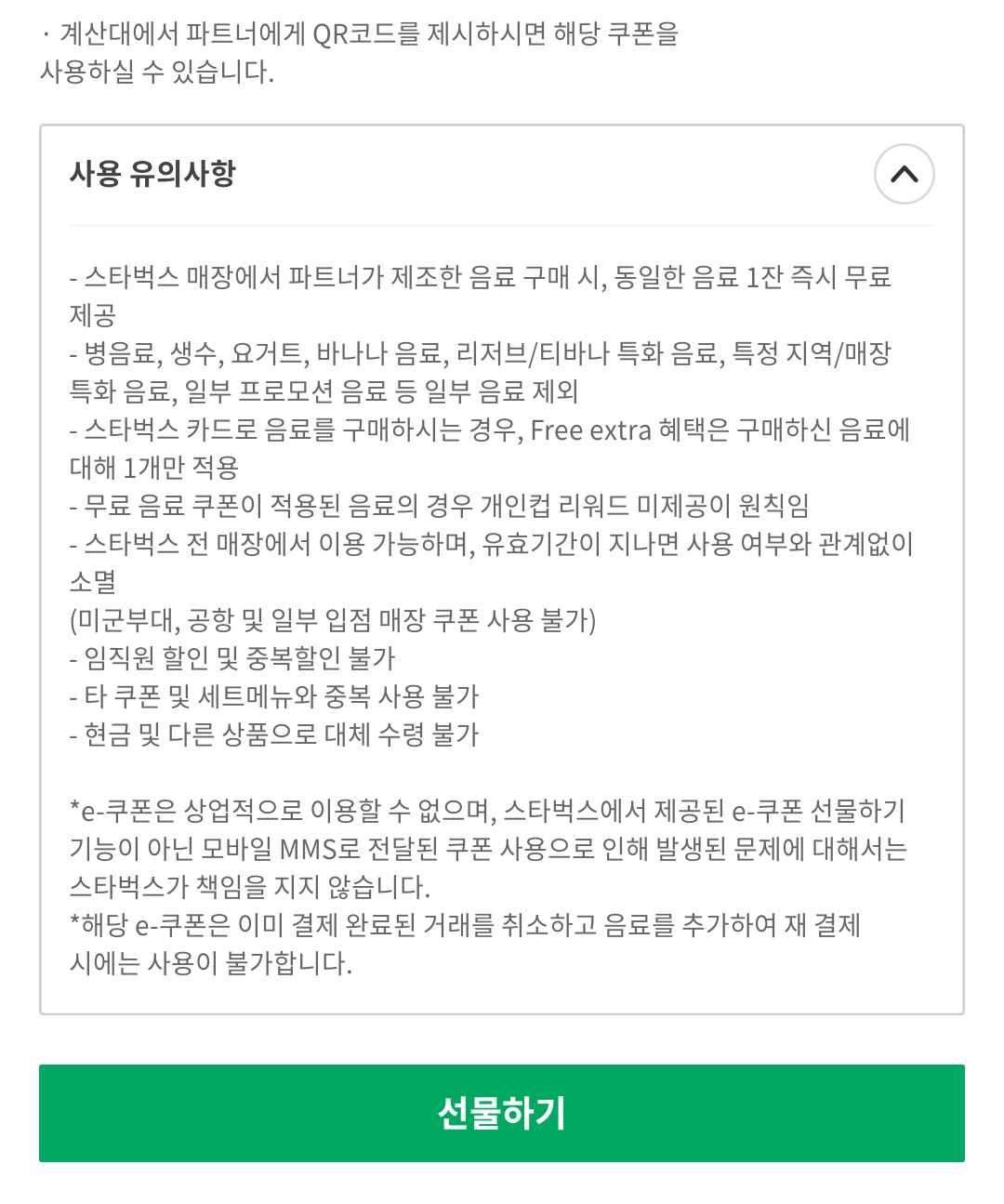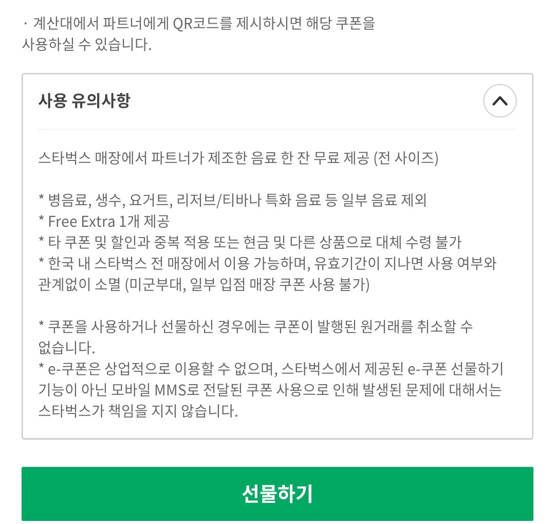 스타벅스 어플에 등록된 쿠폰은 번호만 알면 선물하기로 보낼 수도 있다.