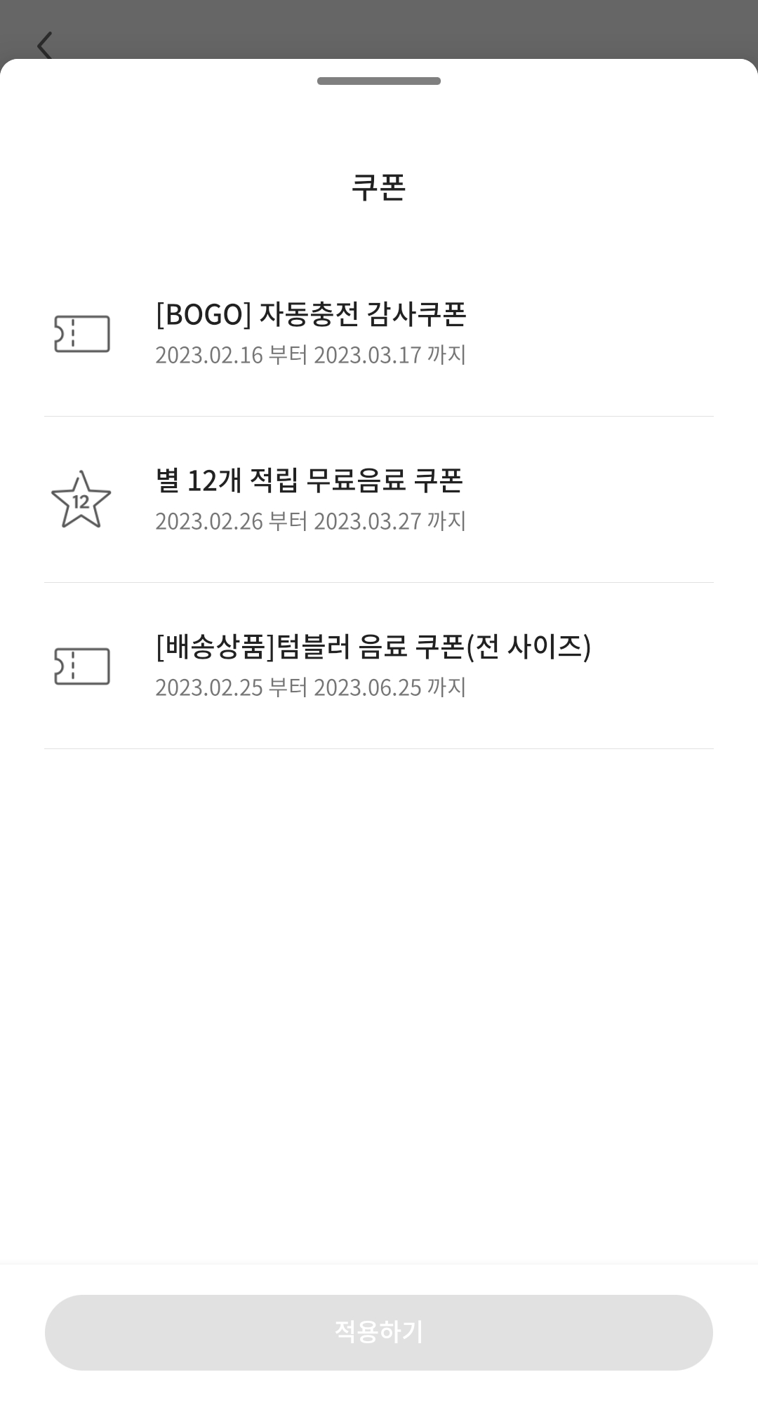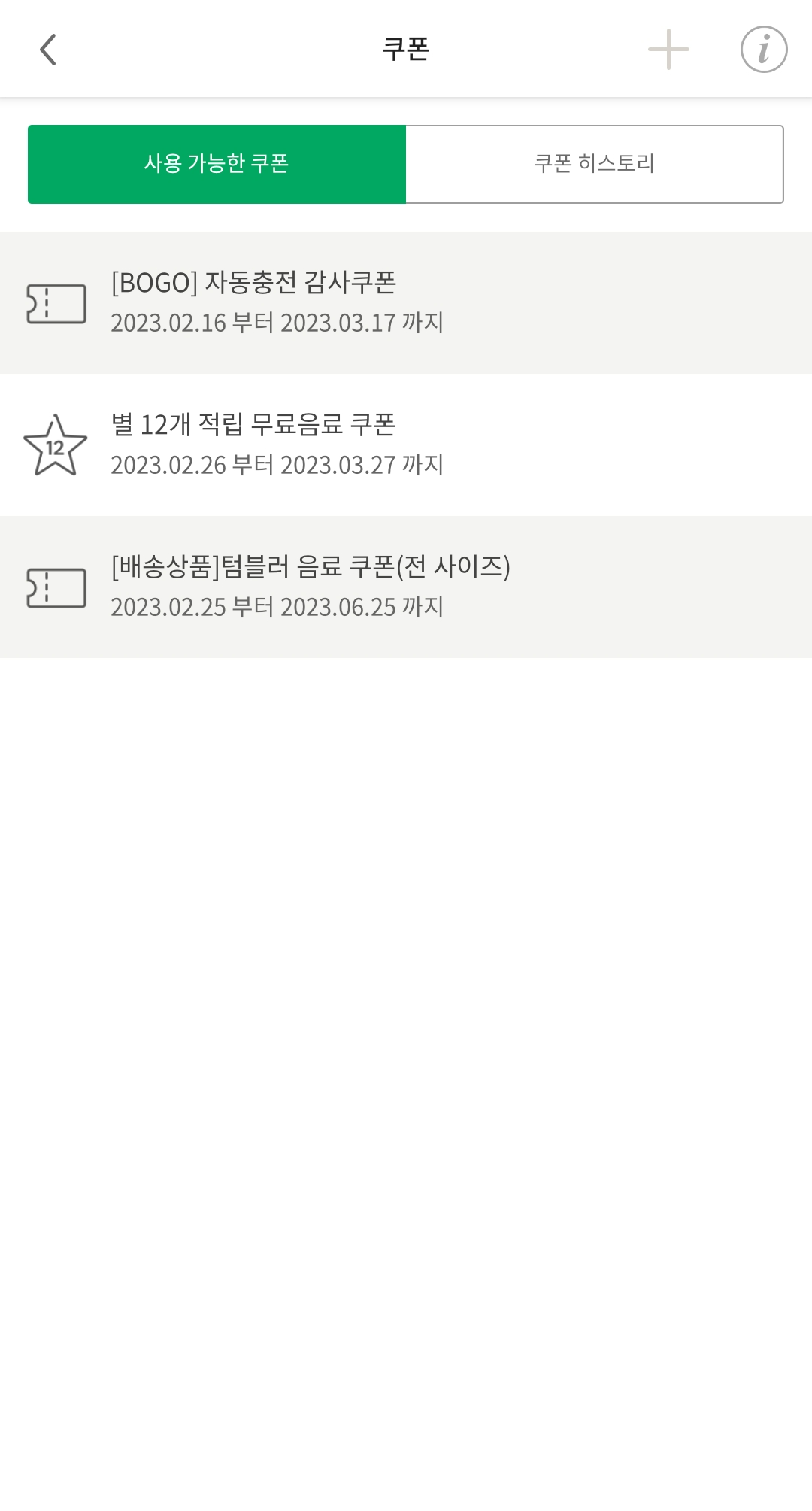 최근에 스타벅스에 좀 자주 갔더니 쿠폰이 세 개나 들어와 있었다.
