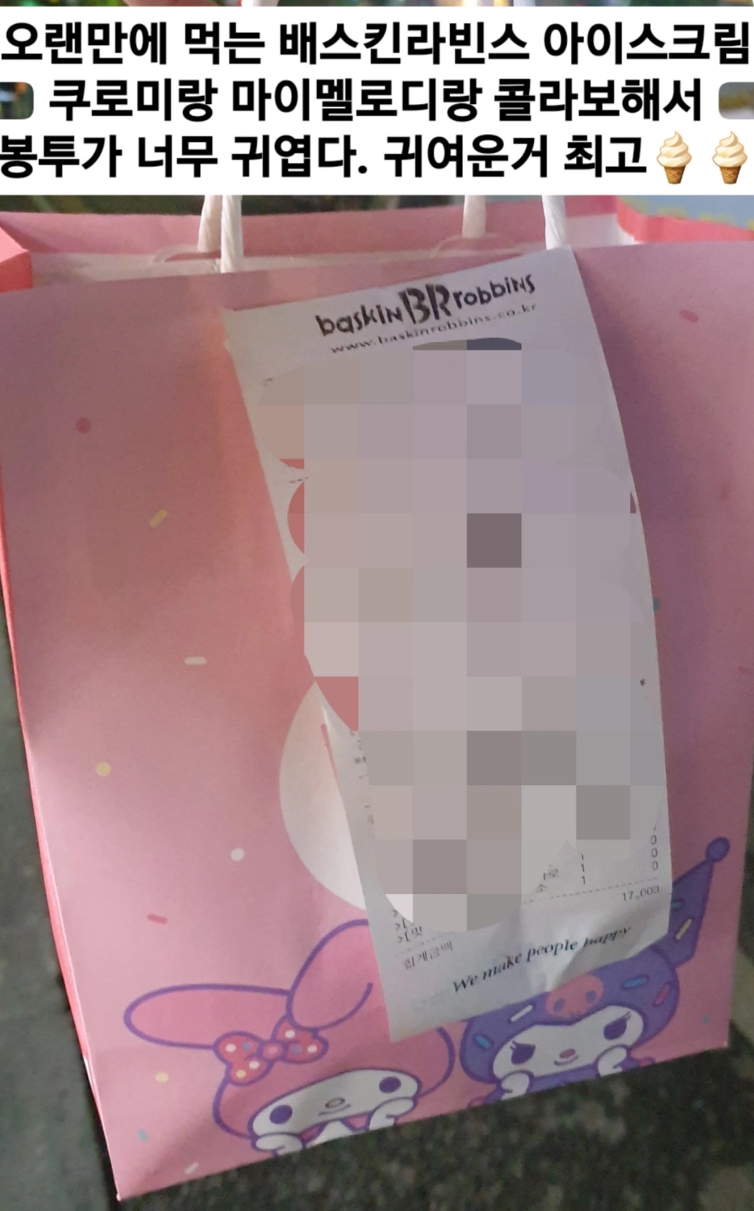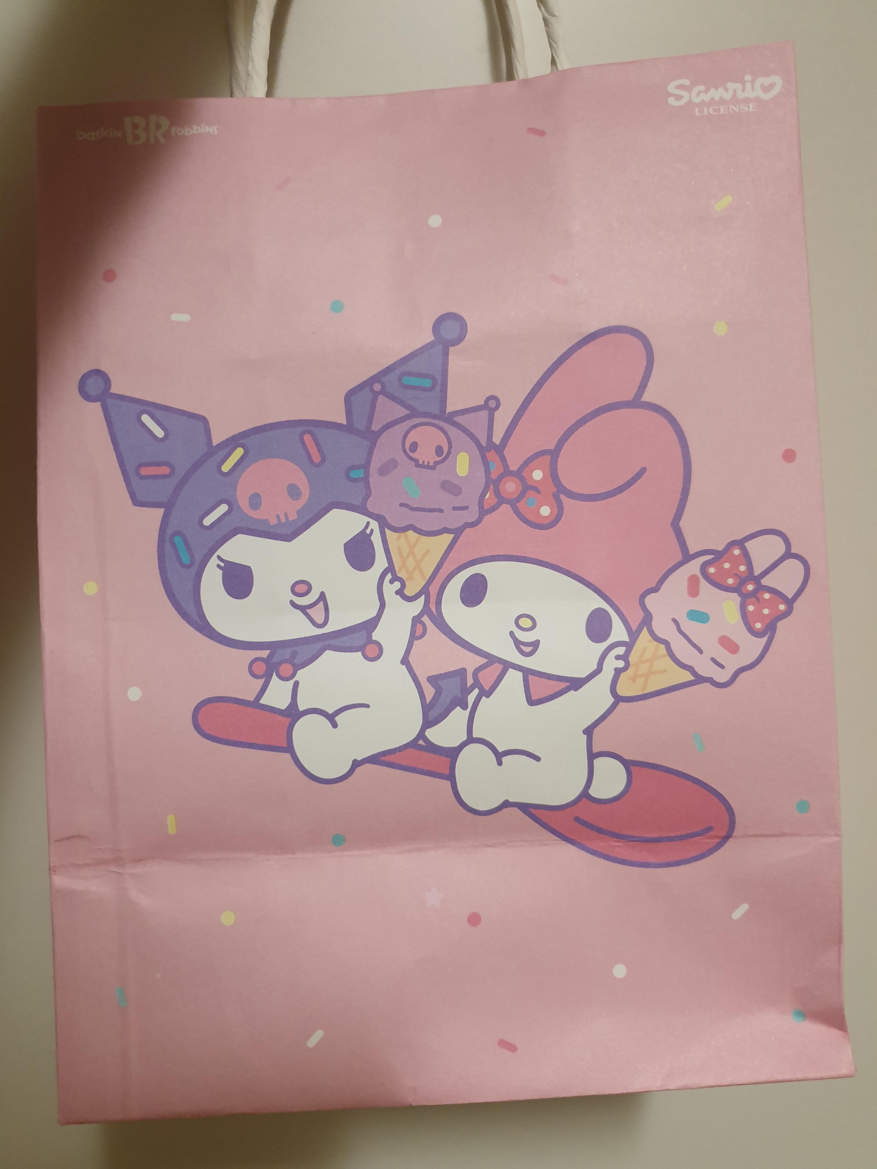 배스킨 라빈스 아이스크림을 샀더니 마이멜로디와 쿠로미가 그려져 있는 봉투에 담아줬다.