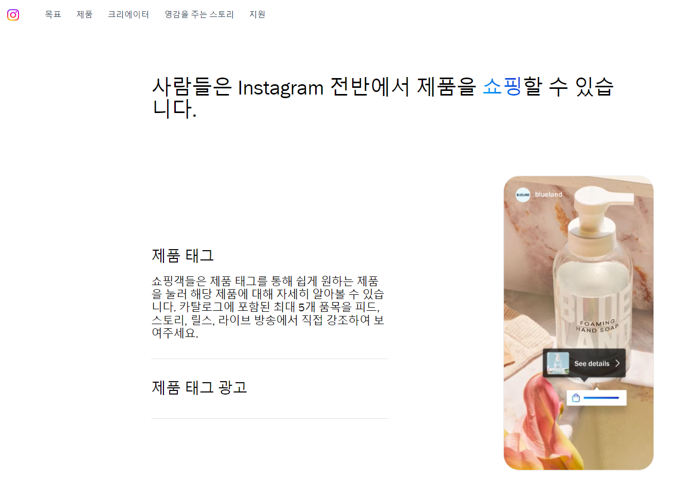 인스타그램 shop 기능은 게시글, 릴스에 제품 태그를 하고 더 보기를 누르면 쇼핑몰로 이동한다. 여기서 웹사이트를 잠깐 경유해서 쿠팡링크를 연결해서 쿠팡 접속을 하게 만들고 설명란에 공정위 문구를 쓰면 된다.