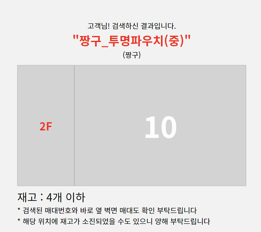 재고 수량과 물건이 있는 위치가 함께 나와서 찾기가 편리하다.
