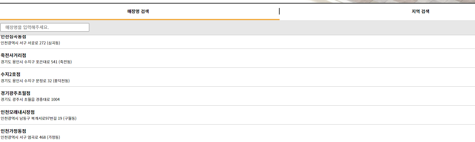 여기에 뜨지 않는다면 그 매장은 가맹점인 것이다.