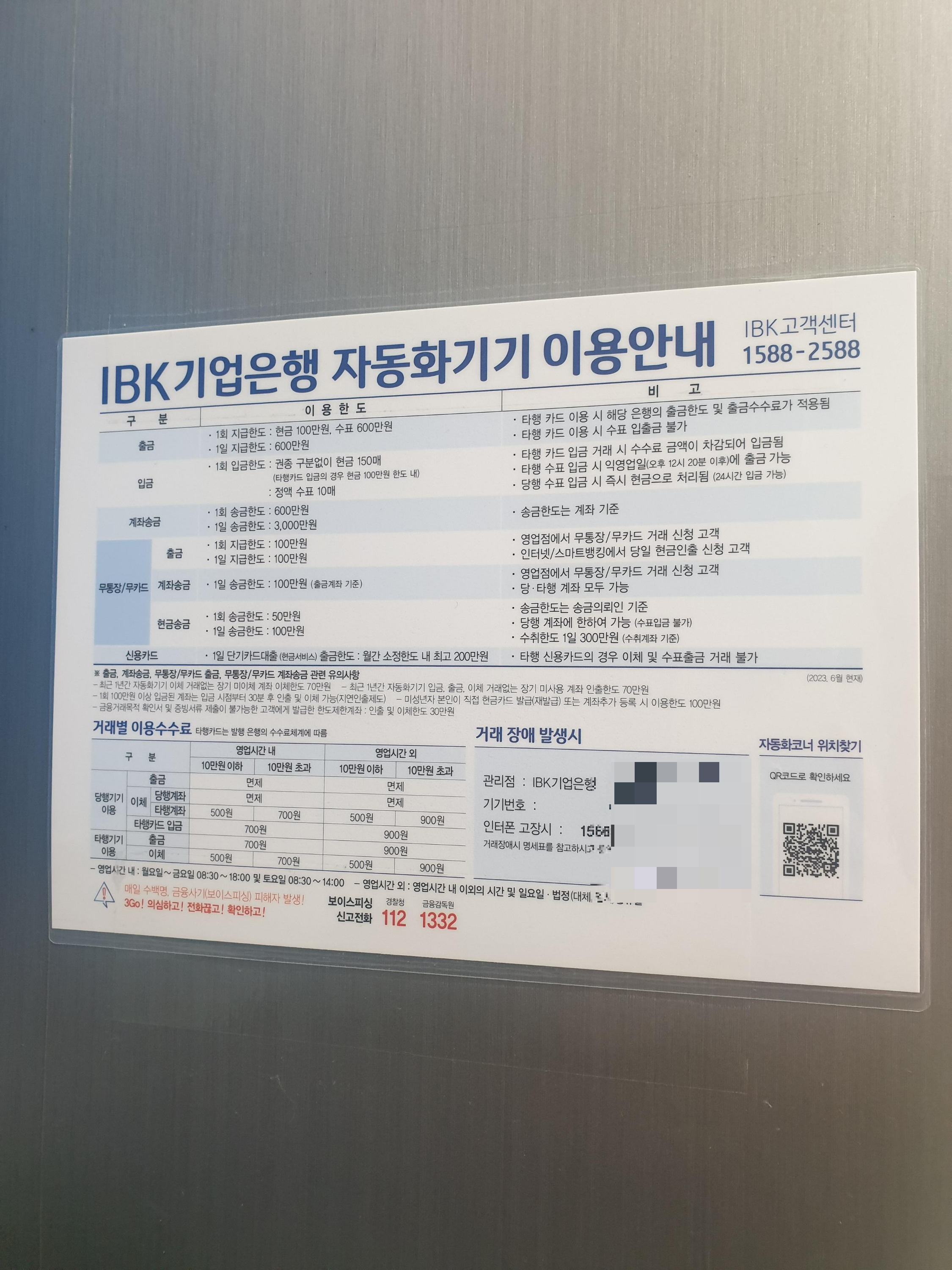 ATM 옆에 붙어있던 IBK기업은행 자동화기기 이용안내이다.