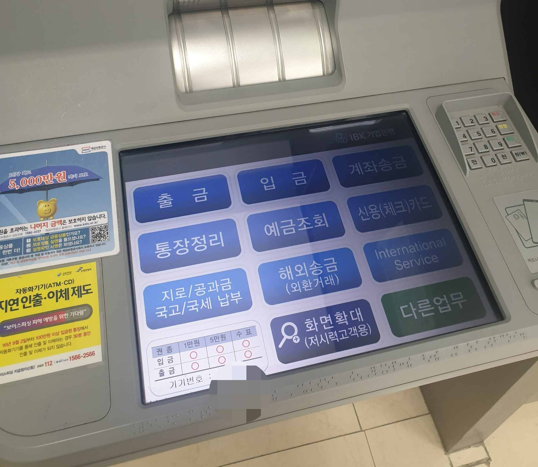 기업은행 ATM 1일 입금한도 및 출금한도를 소개하려고 한다. 은행 ATM으로 현금을 입금해야 해서 기업은행 ATM에 방문했다. 은행 ATM 입금을 해 본 지 오래되어서 하루 입금 가능 금액과 출금 가능 금액을 몰랐는데 옆에 설명사진이 있어서 사진을 찍어왔다.
