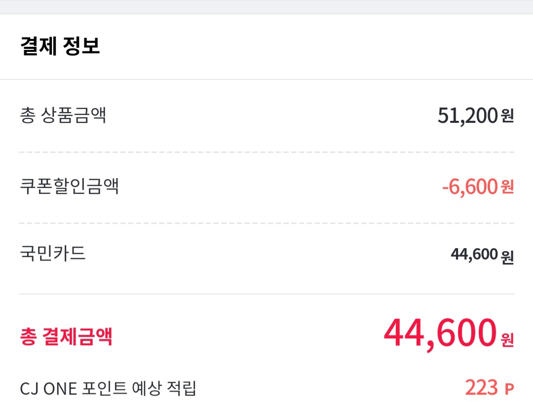 선크림 기획세트 두 개를 구매하면 48,600원이었고 4,000원을 할인받아서 44,600원을 결제했다.