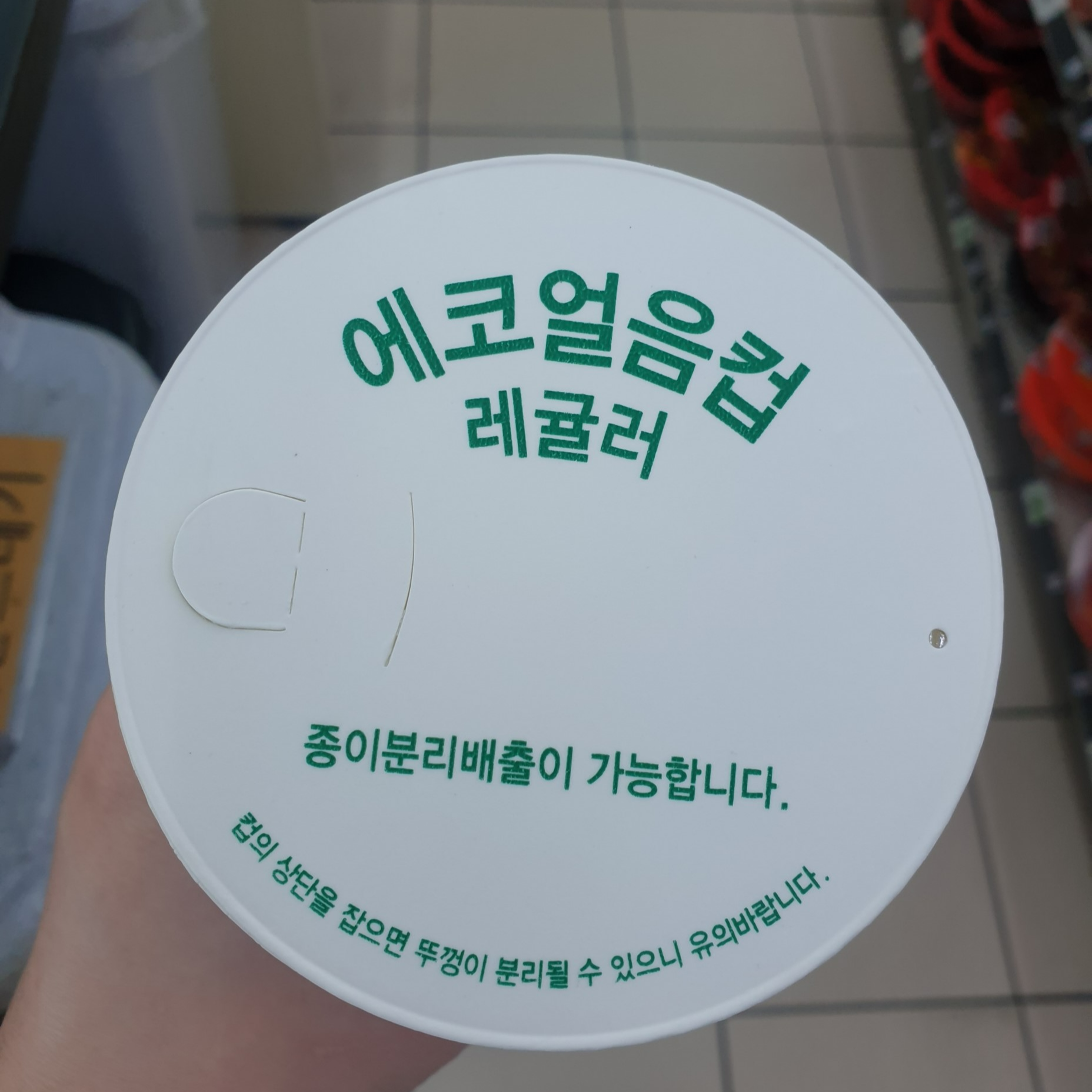세븐 일레븐 에코 얼음컵은 종이분리배출이 가능하다는 설명이 써있었다.