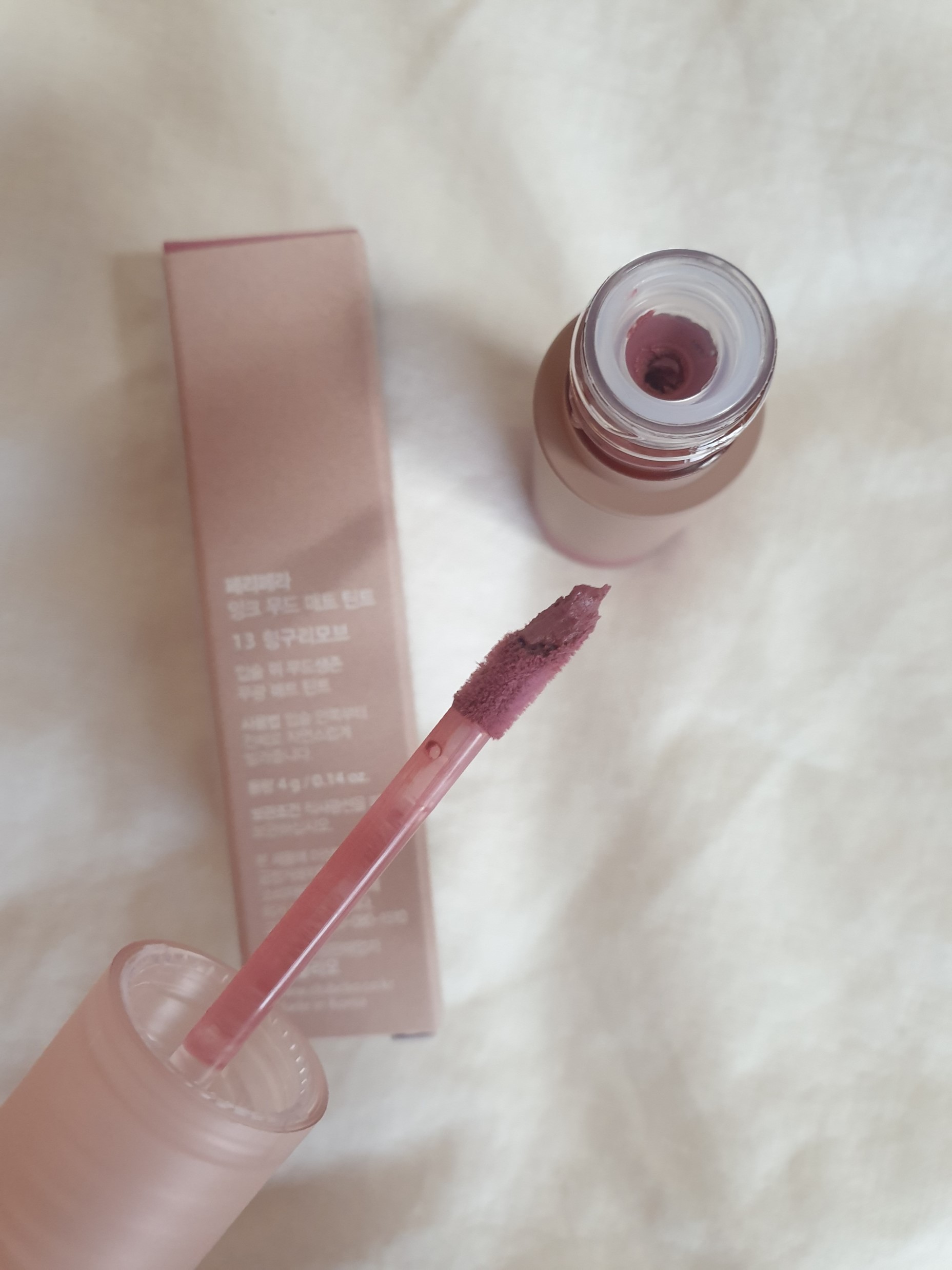 내 얼굴 톤 생각 안하고 그냥 색이 예쁘고 이런 색 틴트는 없어서 샀다.