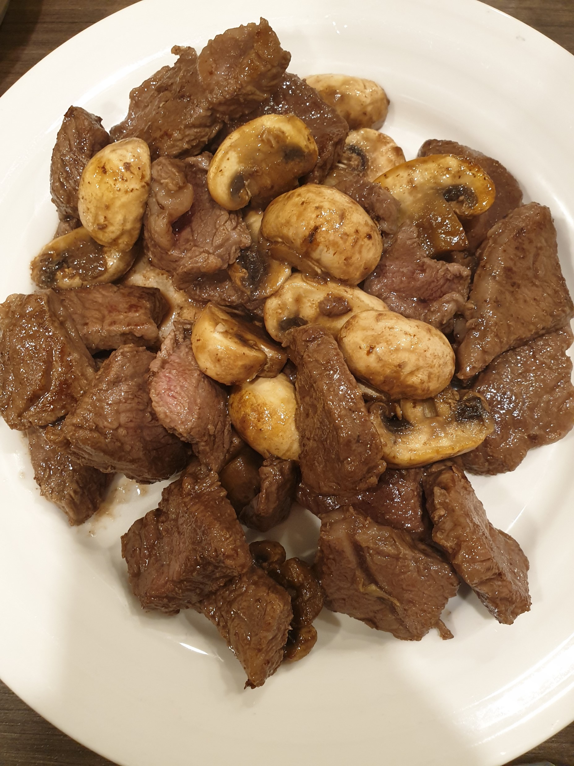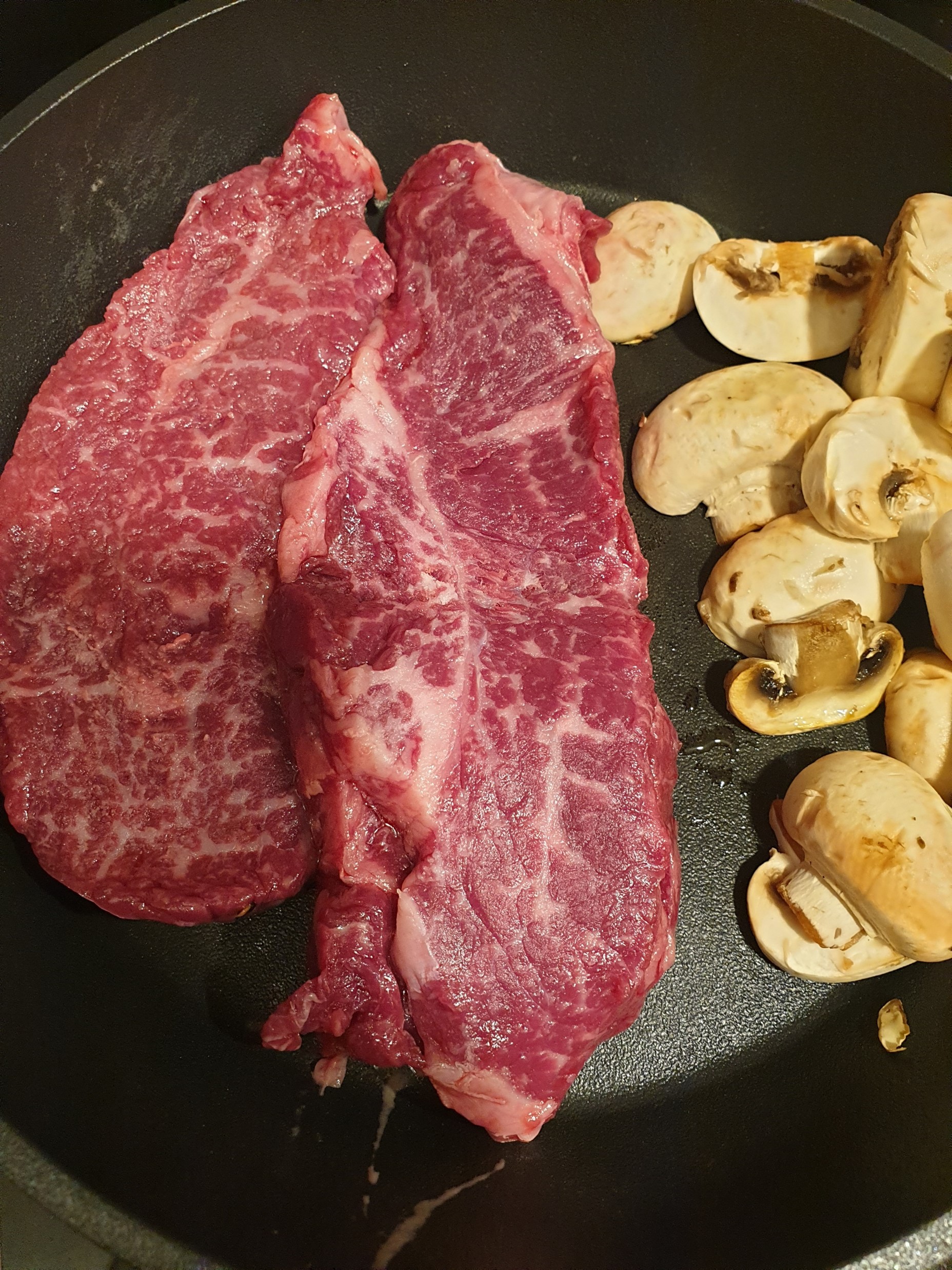 버섯은 양송이버섯과 새송이 버섯, 채소는 양파 또는 아스파라거스가 잘 어울린다.