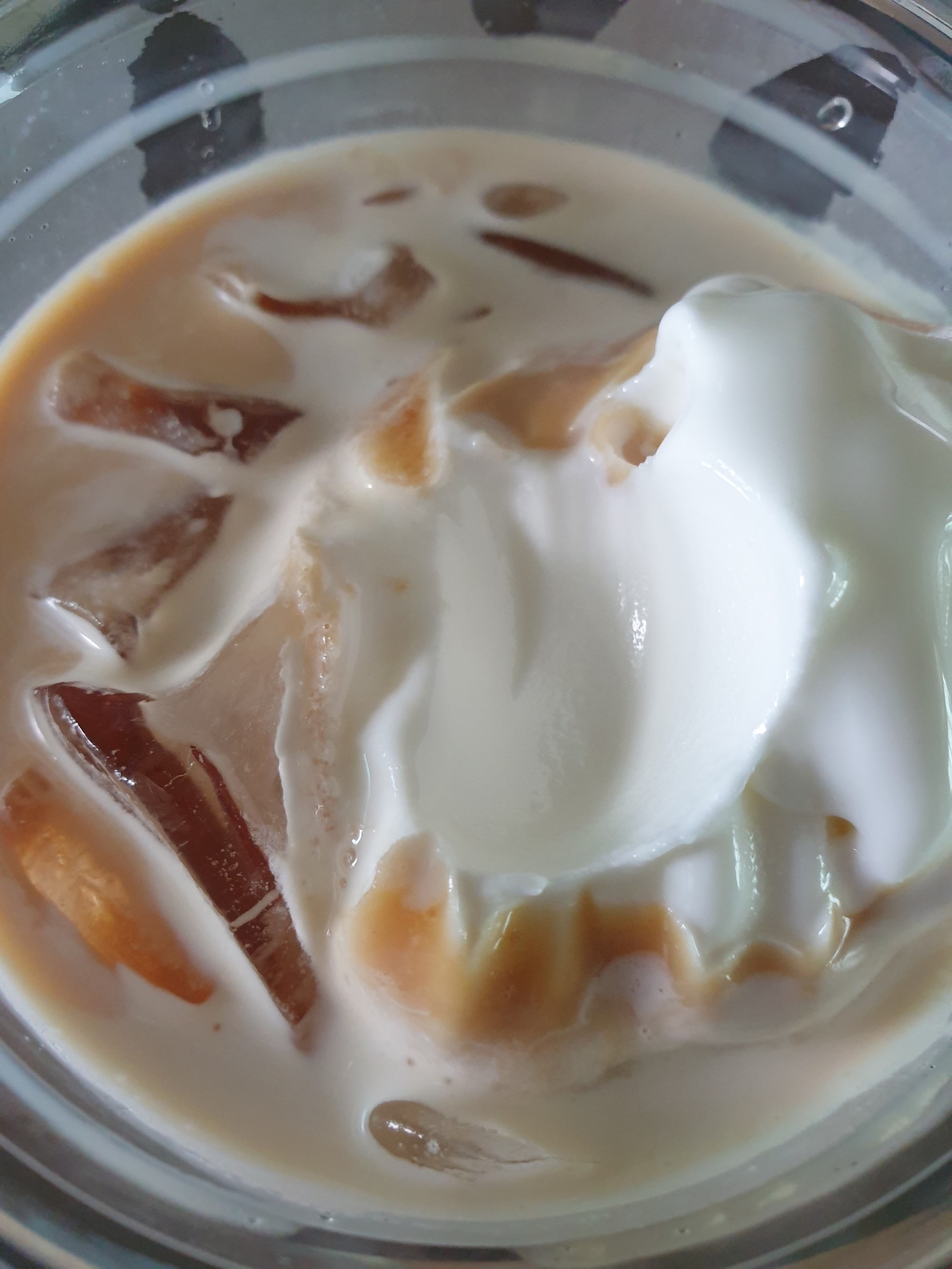 카페 라떼에 얼음과 아이스크림이 만나 커피슬러쉬 같은 맛이 났다.